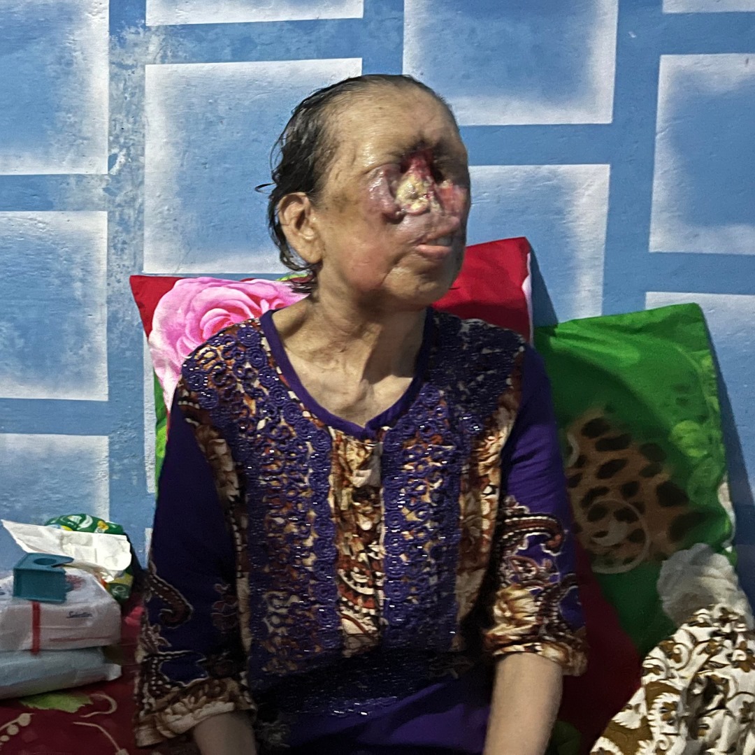 "Setiap hari saya hanya bisa berdoa agar ada keajaiban. Dulu wajah saya normal, sekarang begini... sudah 6 tahun." ujar Nenek Marsih dengan nada lirih. Kanker ganas telah merenggut mata, hidung, dan sebagian besar wajahnya.