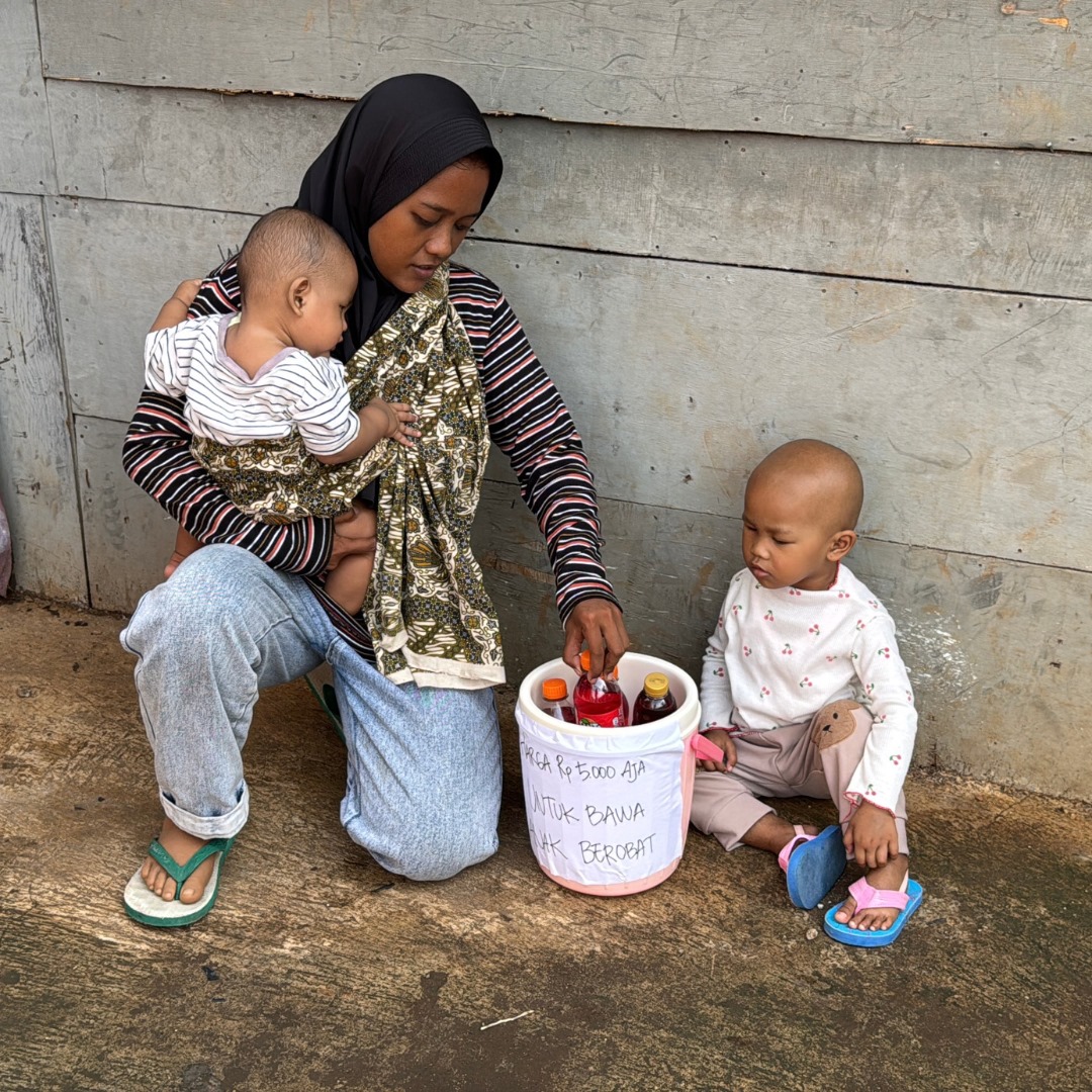 “Saya jualan minuman botol kak. Setiap hari keliling bawa dua anak saya yang sedang sakit kanker mata. Sebenarnya kasihan harus ikut kepanasan kadang kehujanan tapi mau bagaimana lagi” Ibu Putri.