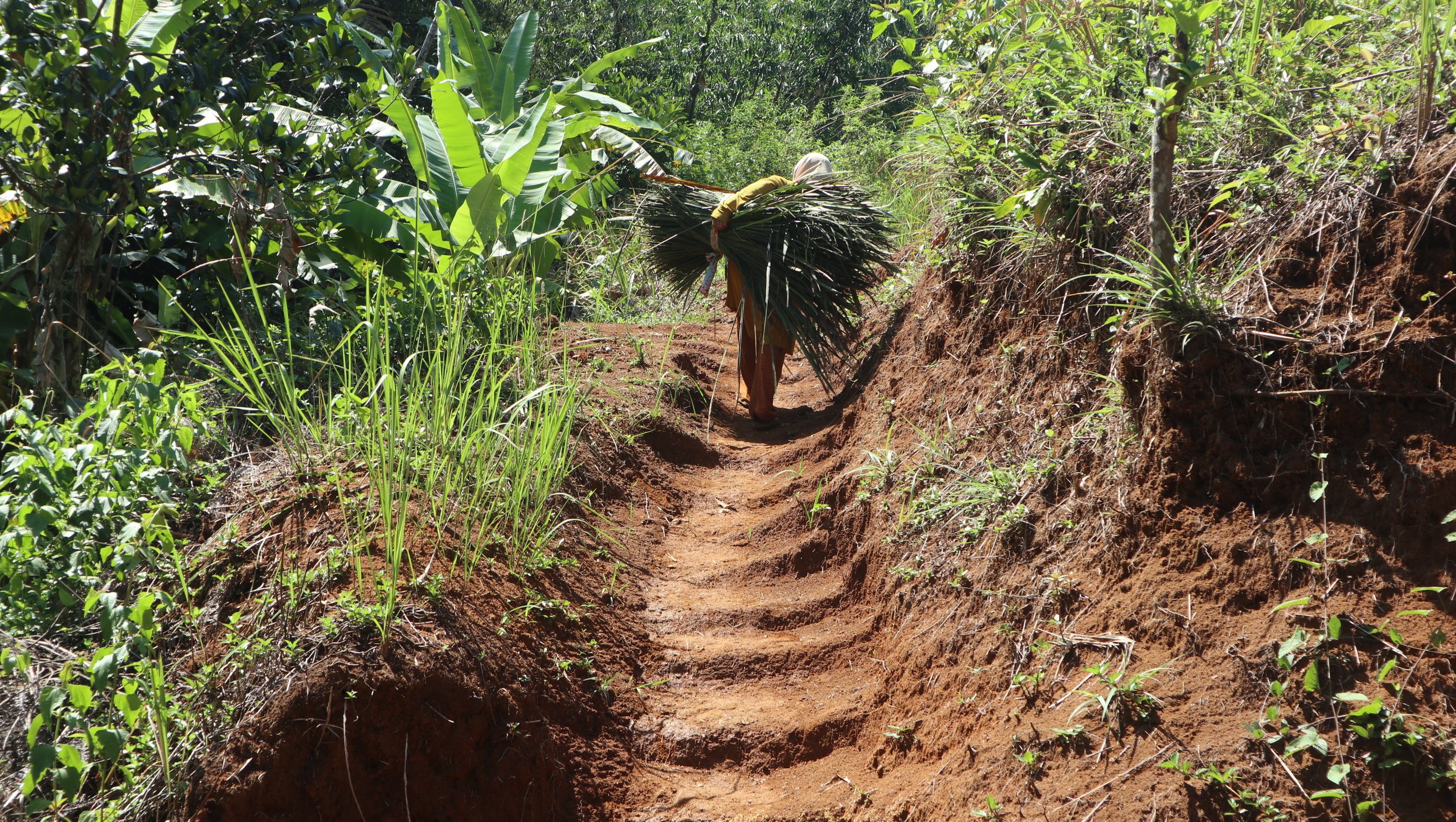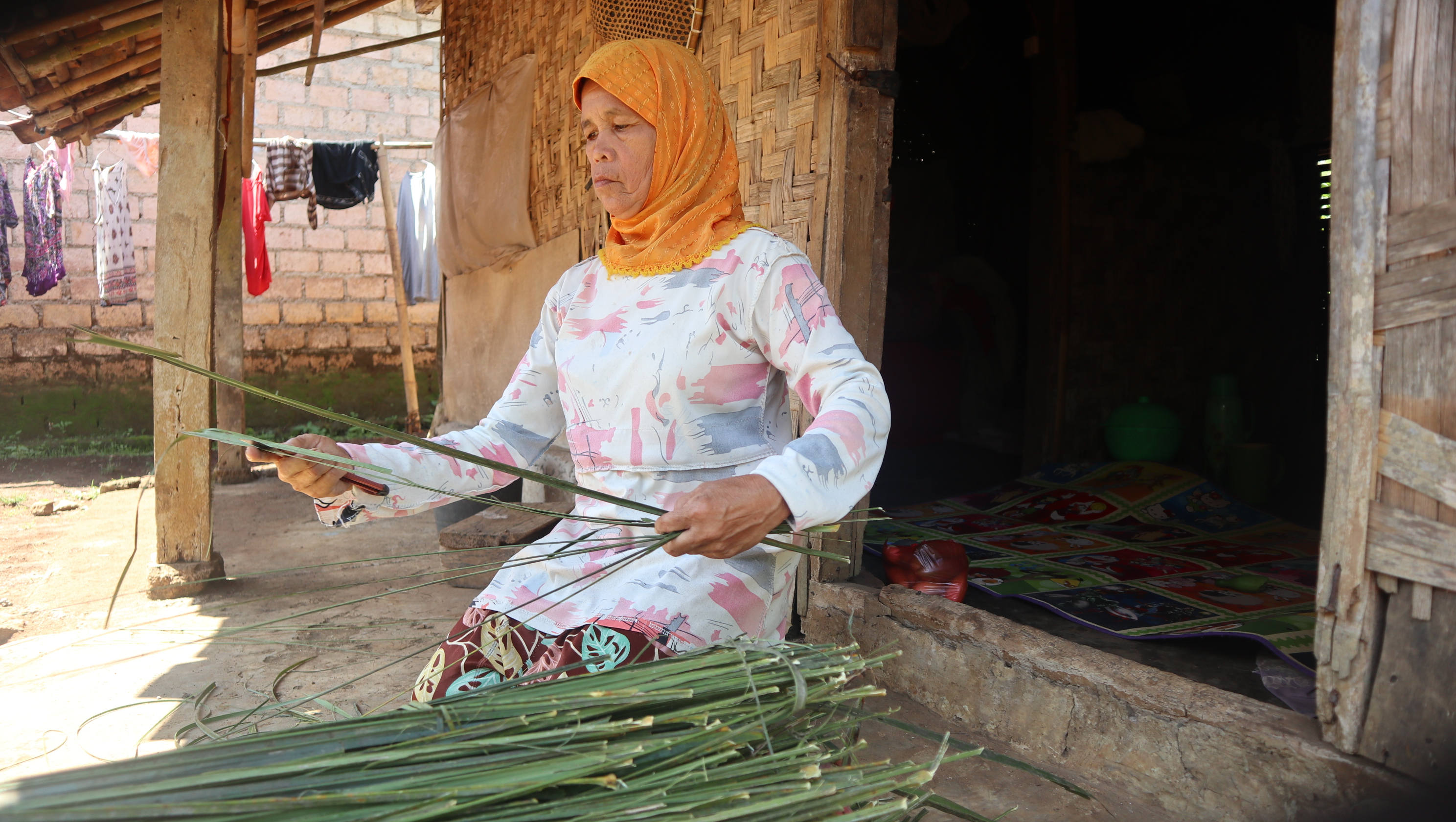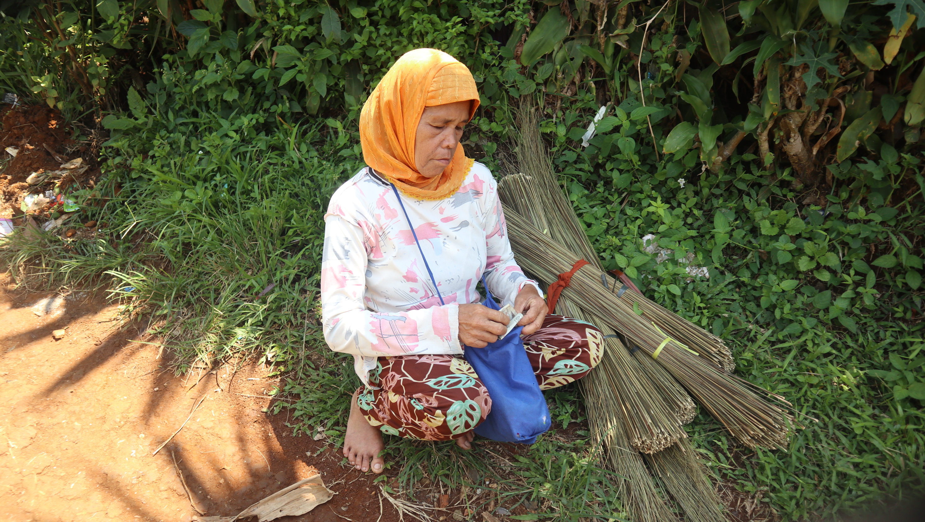 Ditakdirkan bisu dan tuli sejak lahir membuat Mak Iin harus berjuang lebih keras. Setiap hari, ia mengumpulkan daun sawit langsung dari perkebunan menggunakan peralatan seadanya.