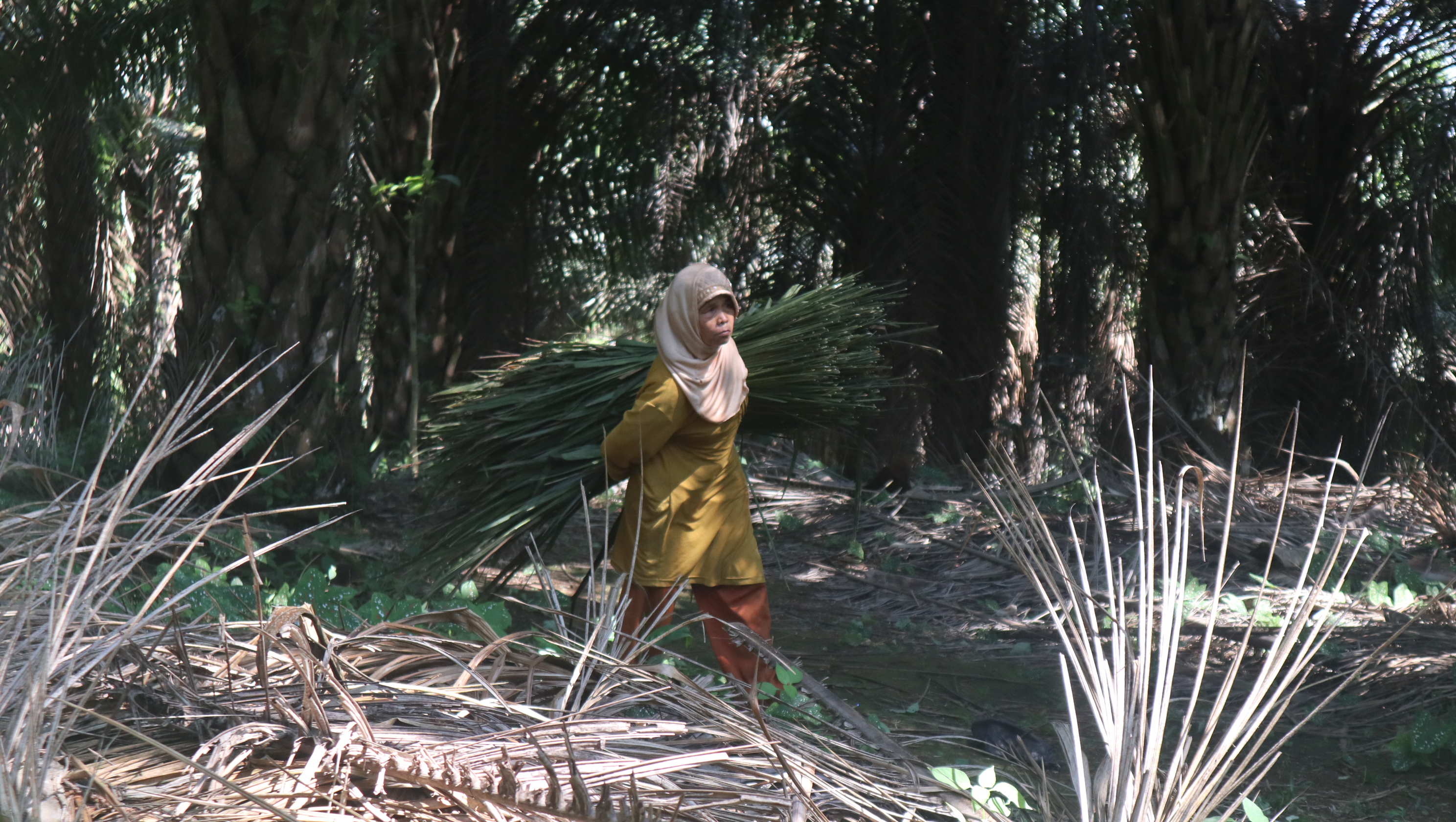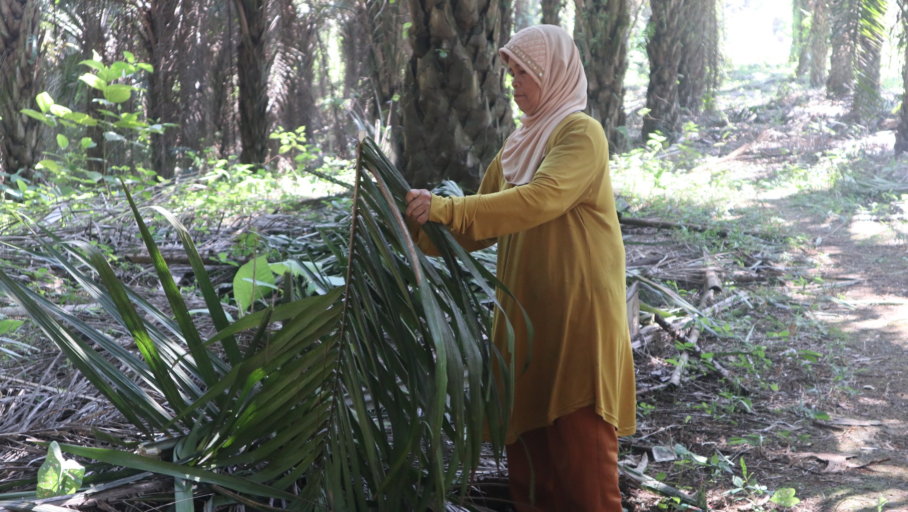 Mak Iin (60) menapaki setiap jengkal perkebunan sawit tanpa dengar, tanpa suara.