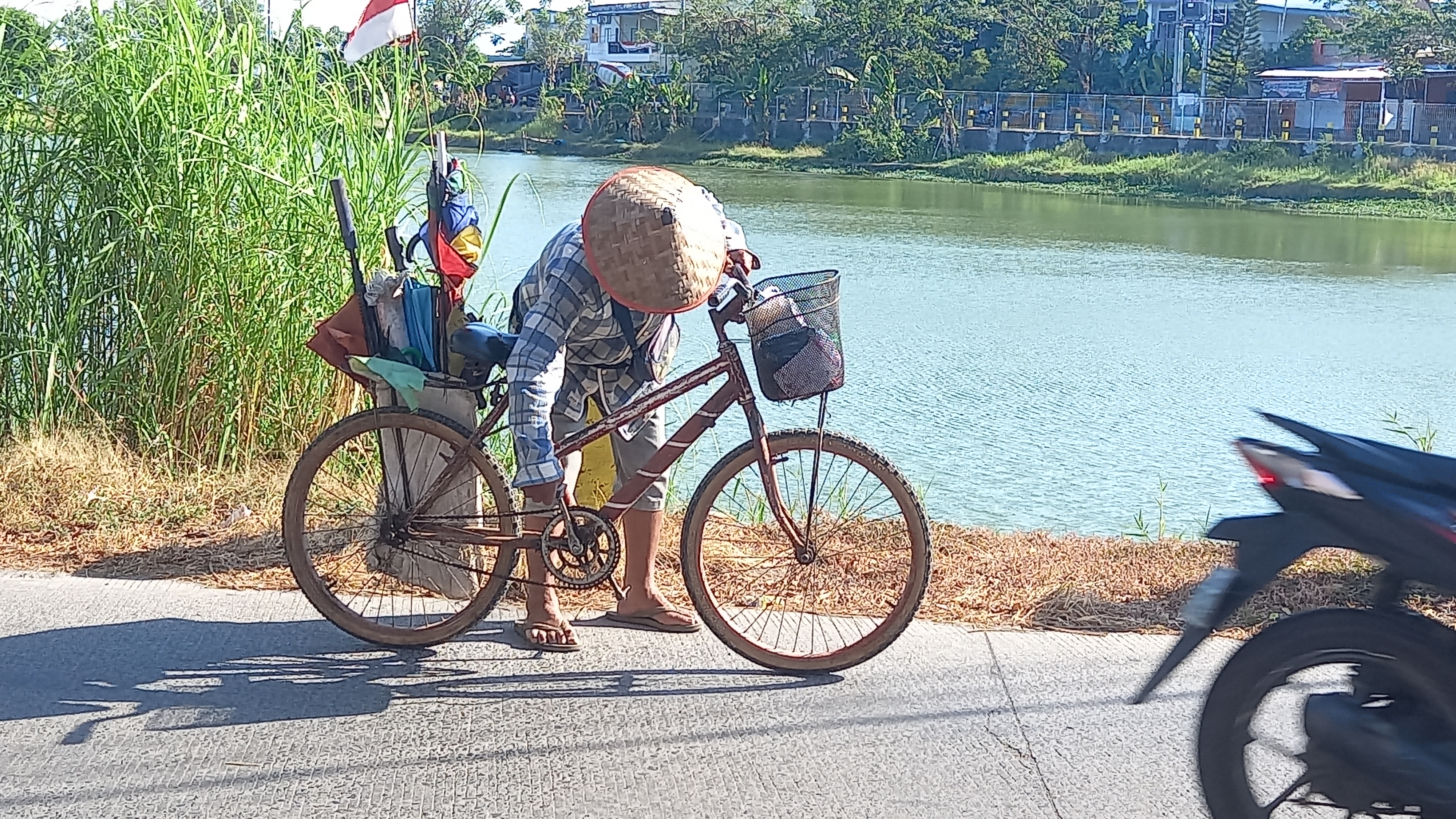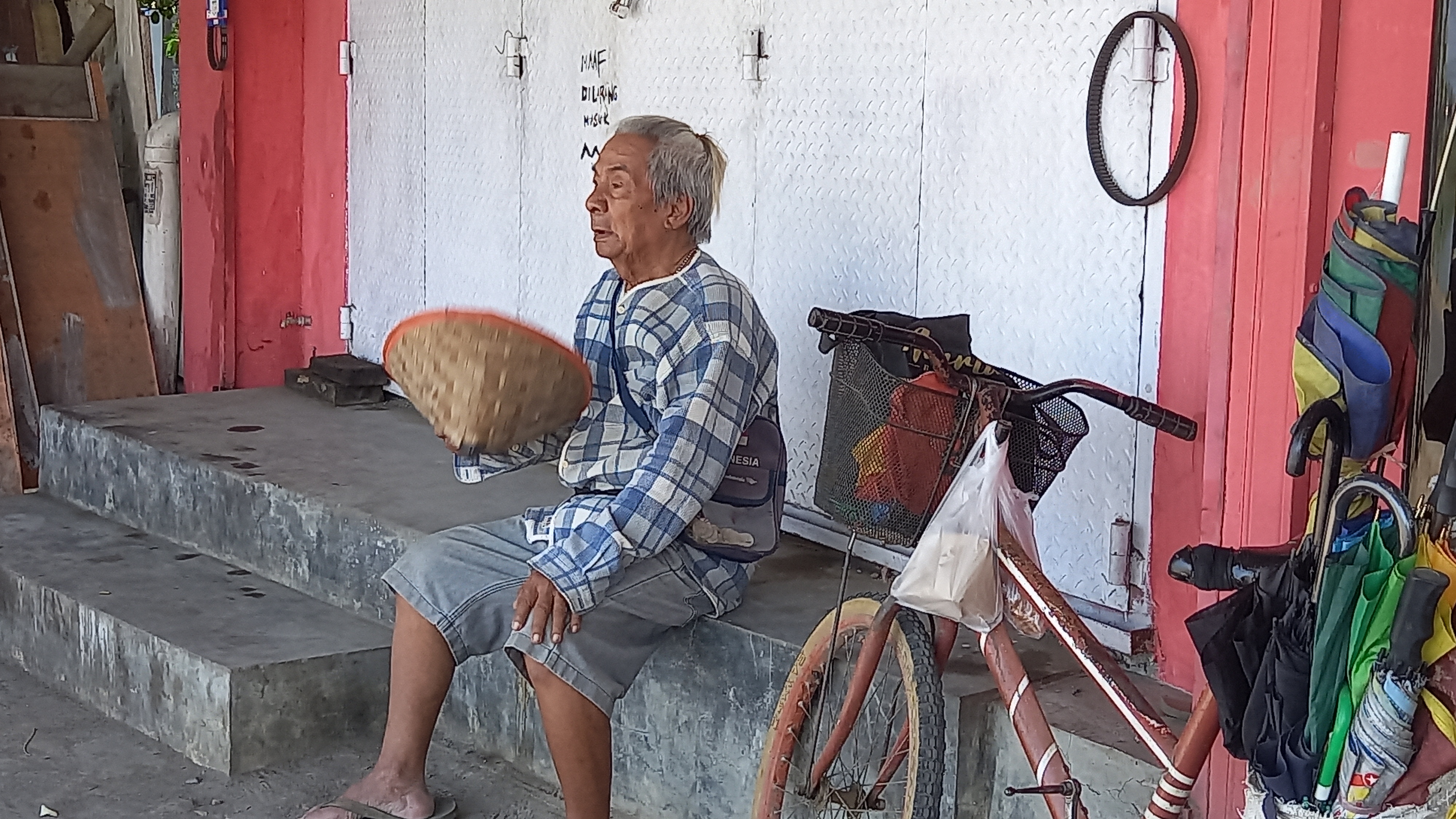 Bermodalkan sepeda tua miliknya, kakek mengayuh sejauh 20 KM dari pagi hingga sore hari untuk menawarkan jasa servis payung.