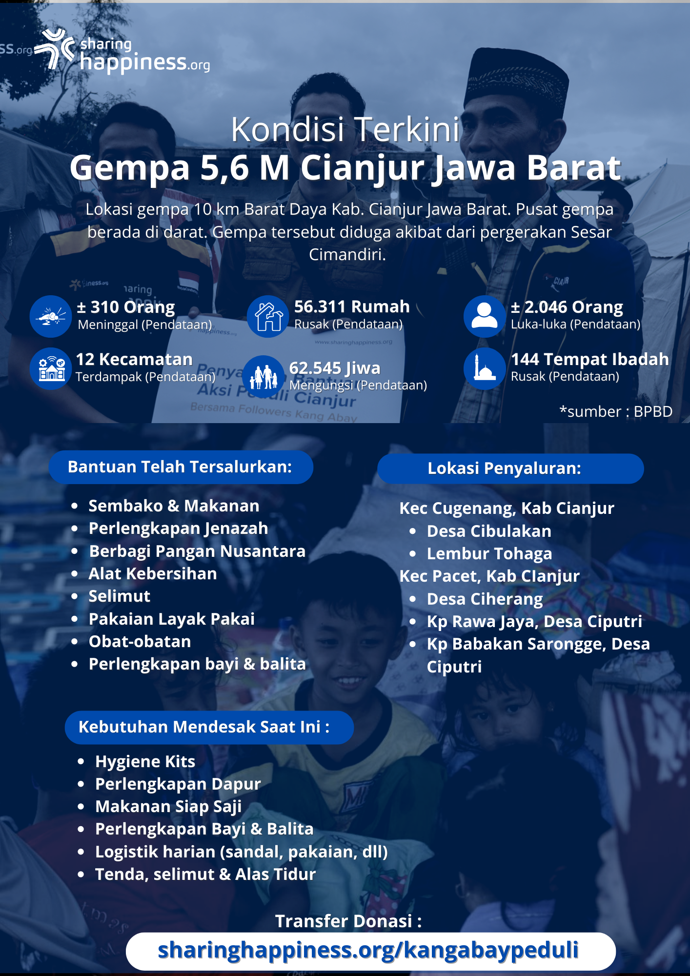 Kang Abay mengajak #TemanBerbagi untuk bergerak. Salurkan bantuanmu untuk kebutuhan mendesak korban terdampak sebagai bentuk kepedulian kita terhadap sesama manusia.
