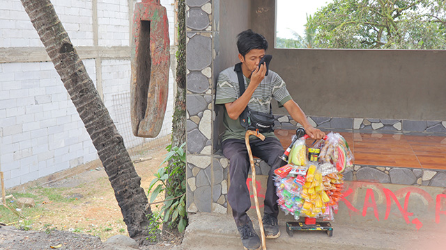“Kondisi kaki saya seperti ini sejak saya lahir, meskipun berat namun saya harus tetap bekerja demi menghidupi dan mengobati ayah saya yang sedang sakit”, ucapnya sembari menghela nafas Panjang.