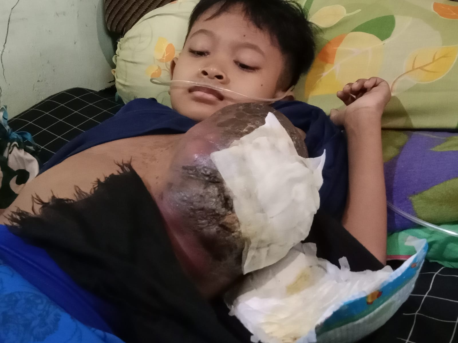 Kanker selaput paru-paru merenggut keceriaan dan masa depan Aris, benjolan sebesar kepala orang dewasa itu berkali-kali pecah dan mengancam nyawanya.