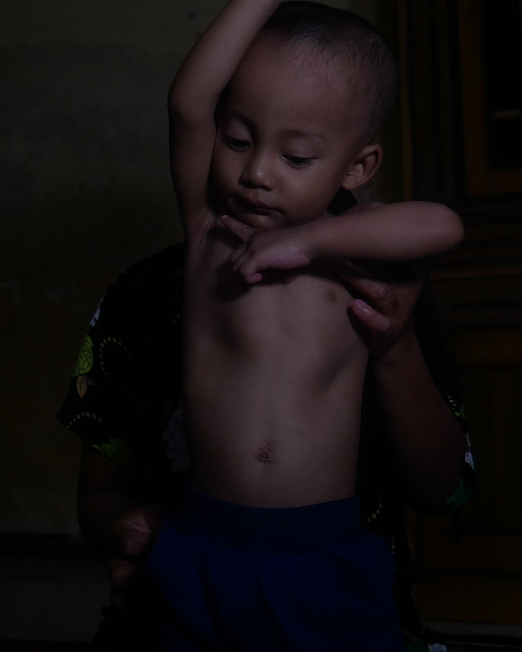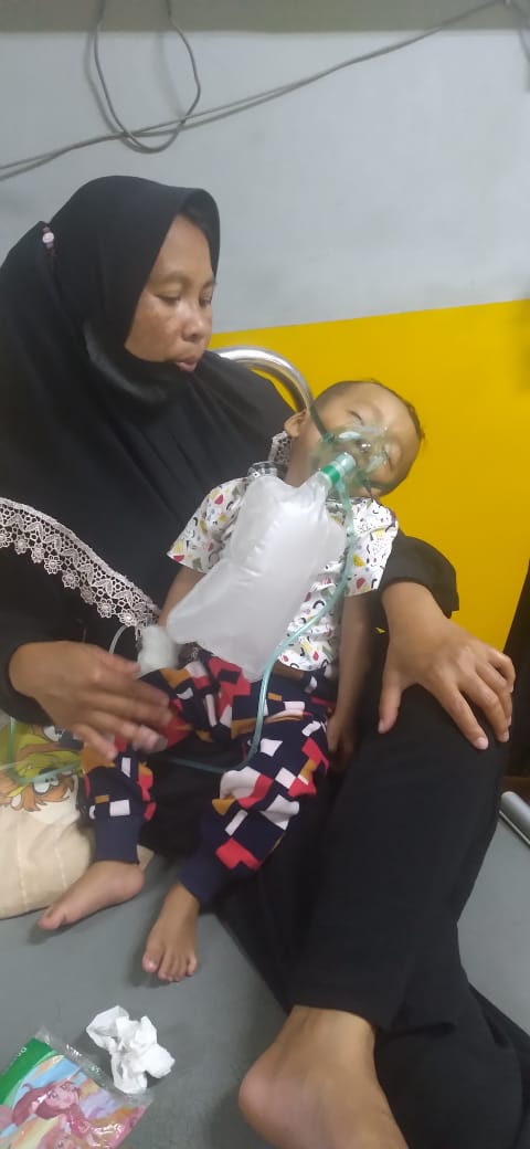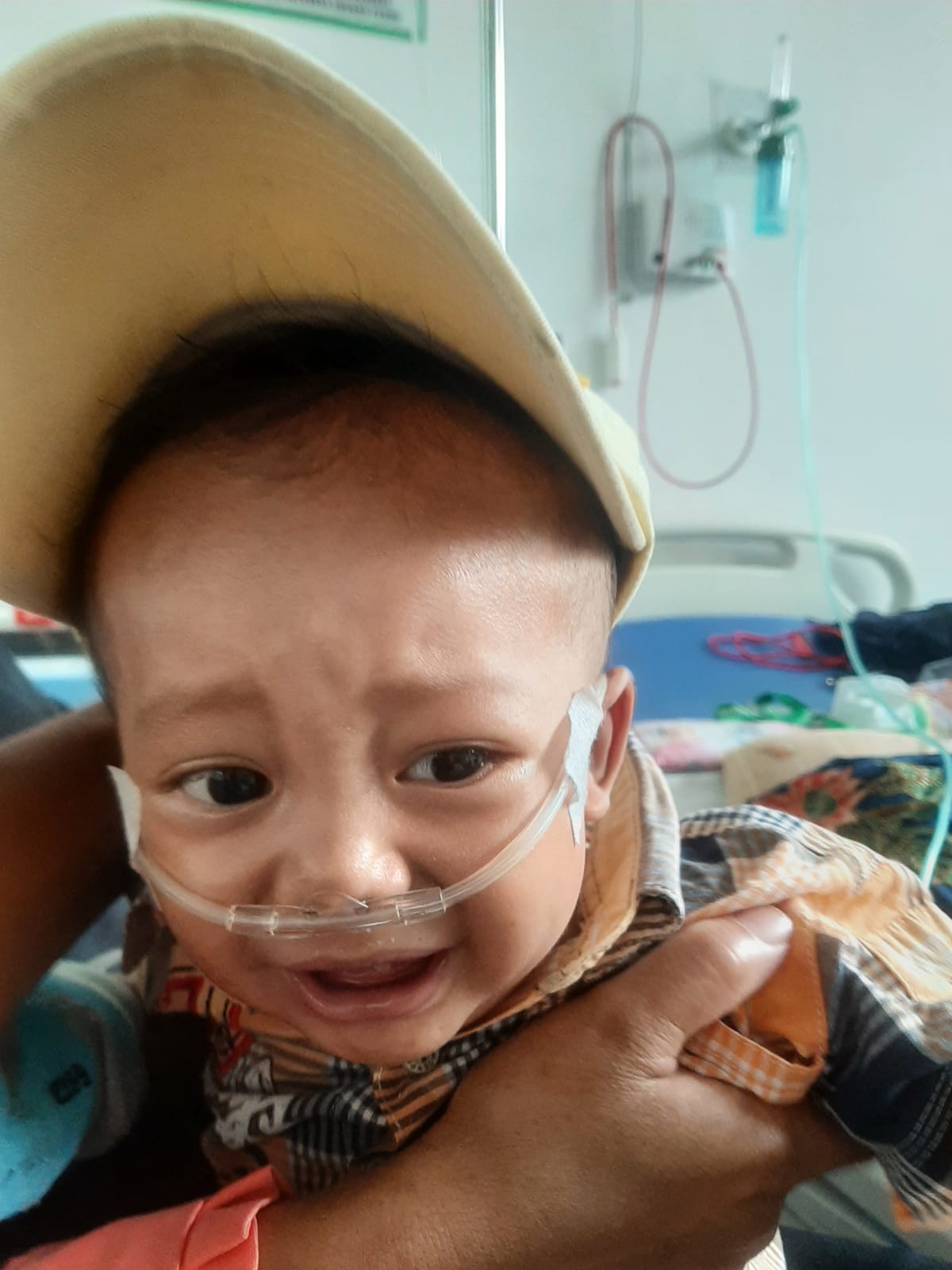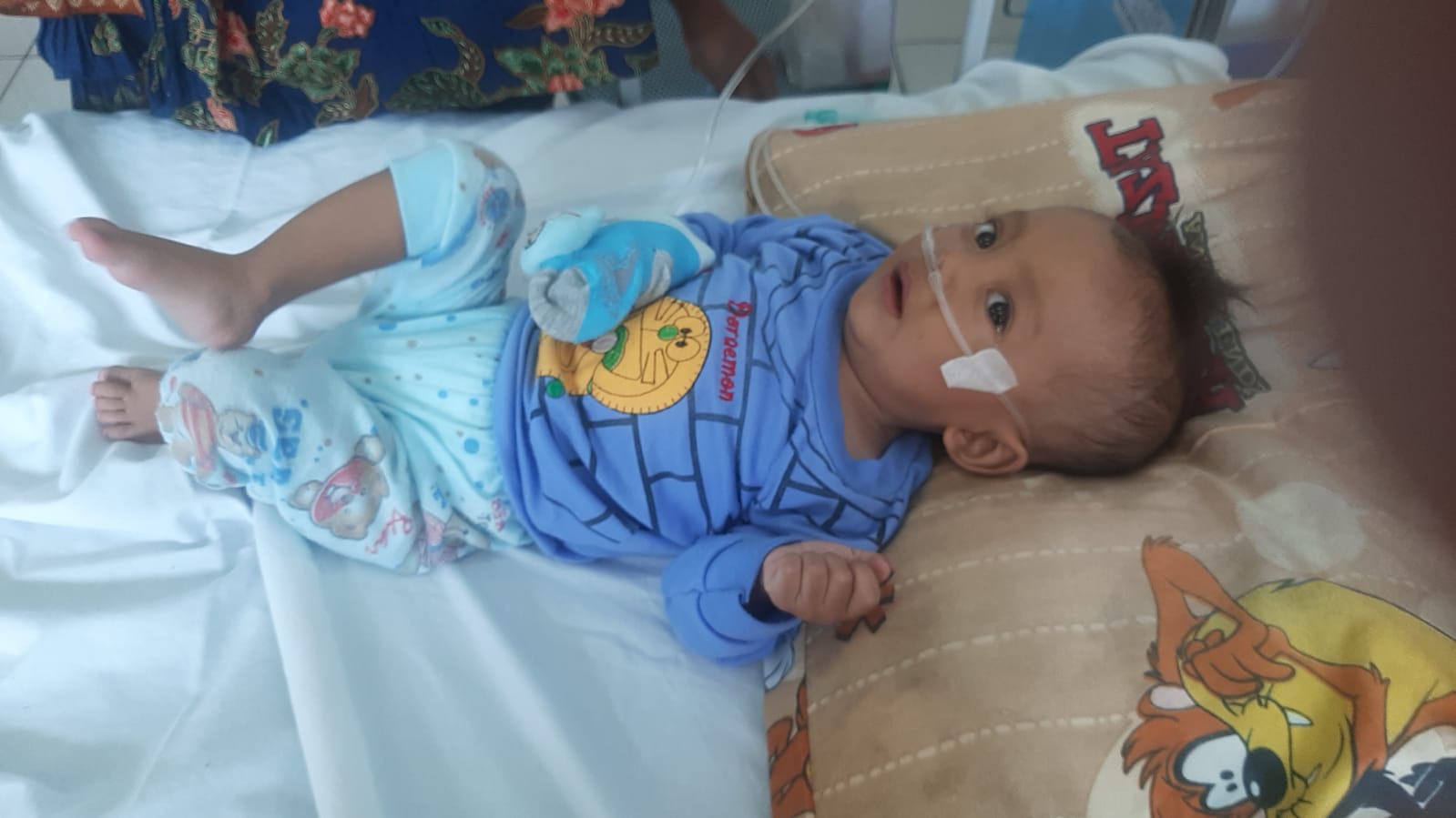 “Kalau sakit jantungnya lagi kambuh, De Karim ga bisa tidur seminggu. Makan juga ga boleh sembarangan, kalau engga langsung keluar lagi sambil batuk berdarah. Cuma ada 2 bayi yang punya penyakit langka ini. Tapi De Karim lebih parah karena satu sisi lainnya tidak punya bilik jantung”, ujar Pak Sirod, ayah De Karim (2 tahun), yang memiliki penyakit kelainan jantung bocor.