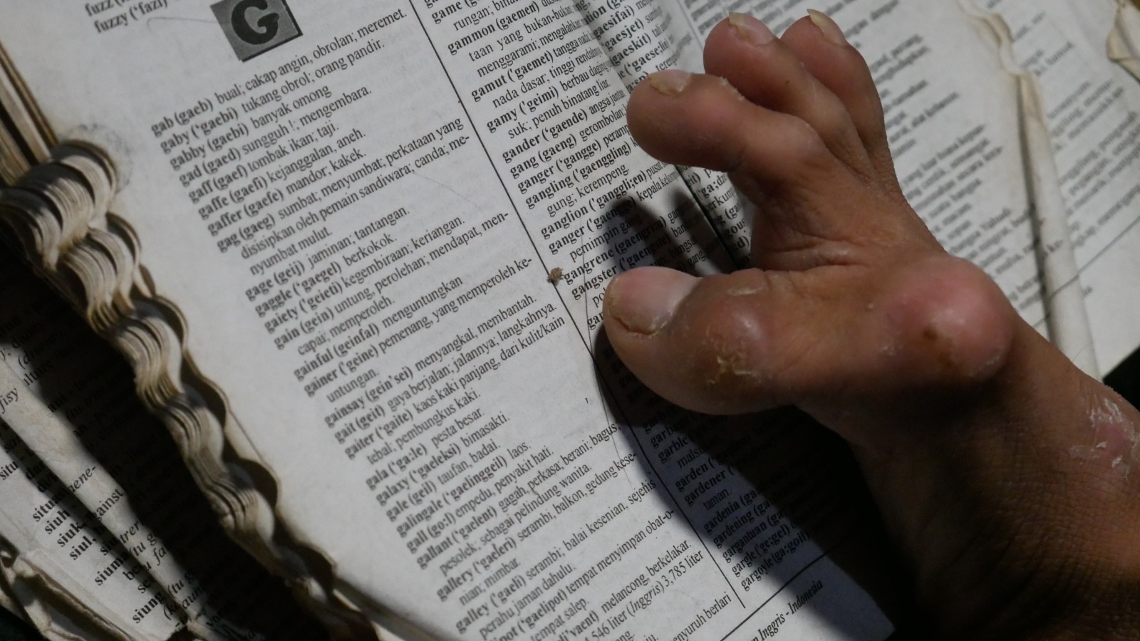 Engkus kecil yang tinggal di pelosok Sukabumi pun diajari oleh sang Ibu, meski dengan kondisi dan pengetahuan Ibu yang seadanya. Dengan jari kakinya, setiap hari dengan tekun Engkus melahap selembar-demi selembar pelajaran terjemahan di kamus tersebut.