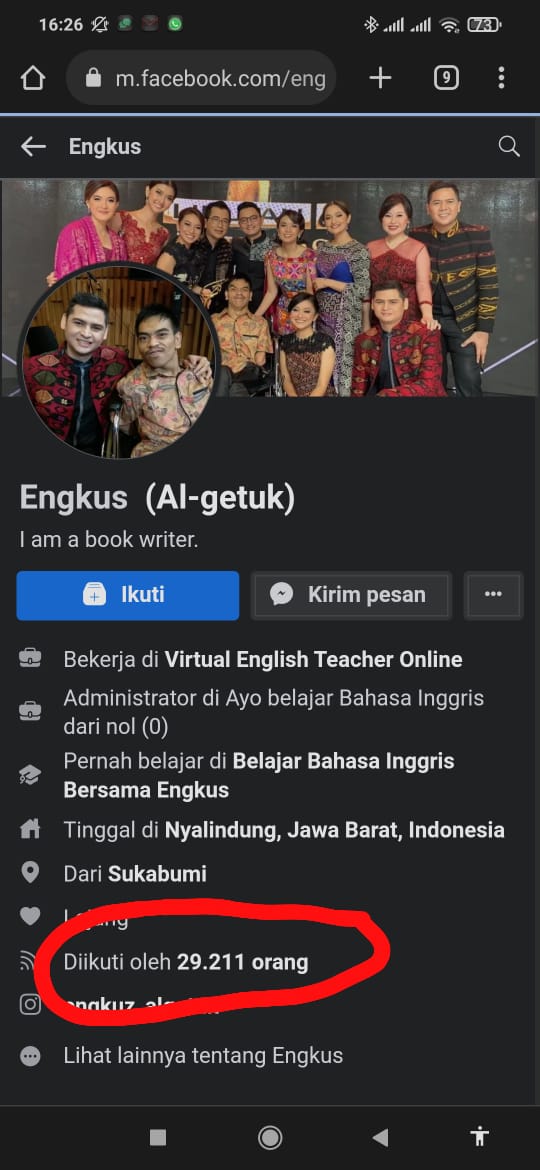 Akun Facebook Engkus saat ini sudah memiliki pengikut lebih dari 29 ribu orang lebih dan Grop Facebook sebagai tempat pembelajaran Bahasa Inggrisnya terdapat 91 ribu orang lebih anggota dari seluruh Indonesia dan bahkan mancanegara. Setiap malam, rata-rata Followers yang mengikuti pembelajaran bahasa Inggrisnya tidak kurang dari hampir 18 ribu orang.