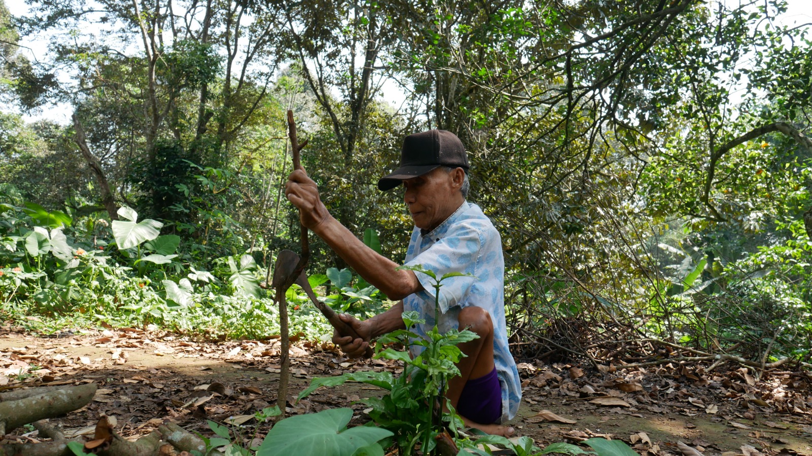 Setiap hari, sejauh belasan kilometer, dengan susah payah Abah Ana masuk ke kebun-kebun dan hutan dengan berjalan menggunakan kedua tangannya. Sedangkan kedua kakinya, Abah seret sambil membawa parang ataupun serulit.