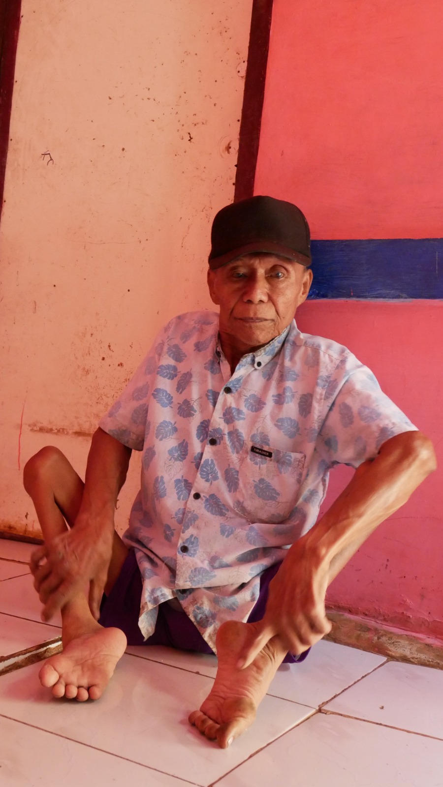 "Tidak setiap hari ada yang nyuruh Abah…katanya karena orang yang mau nyuruh ngored (membersihkan kebun) juga gak tega liat kondisi Abah yang seperti ini. Padahal Abah berharap banget ada yang nyuruh (kerja) karena butuh uang buat makan. Kalaupun ada yang nyuruh paling dapat upah 30ribu saja… ", ujar Abah Ana (67 tahun) lansia penyandang disabilitas.