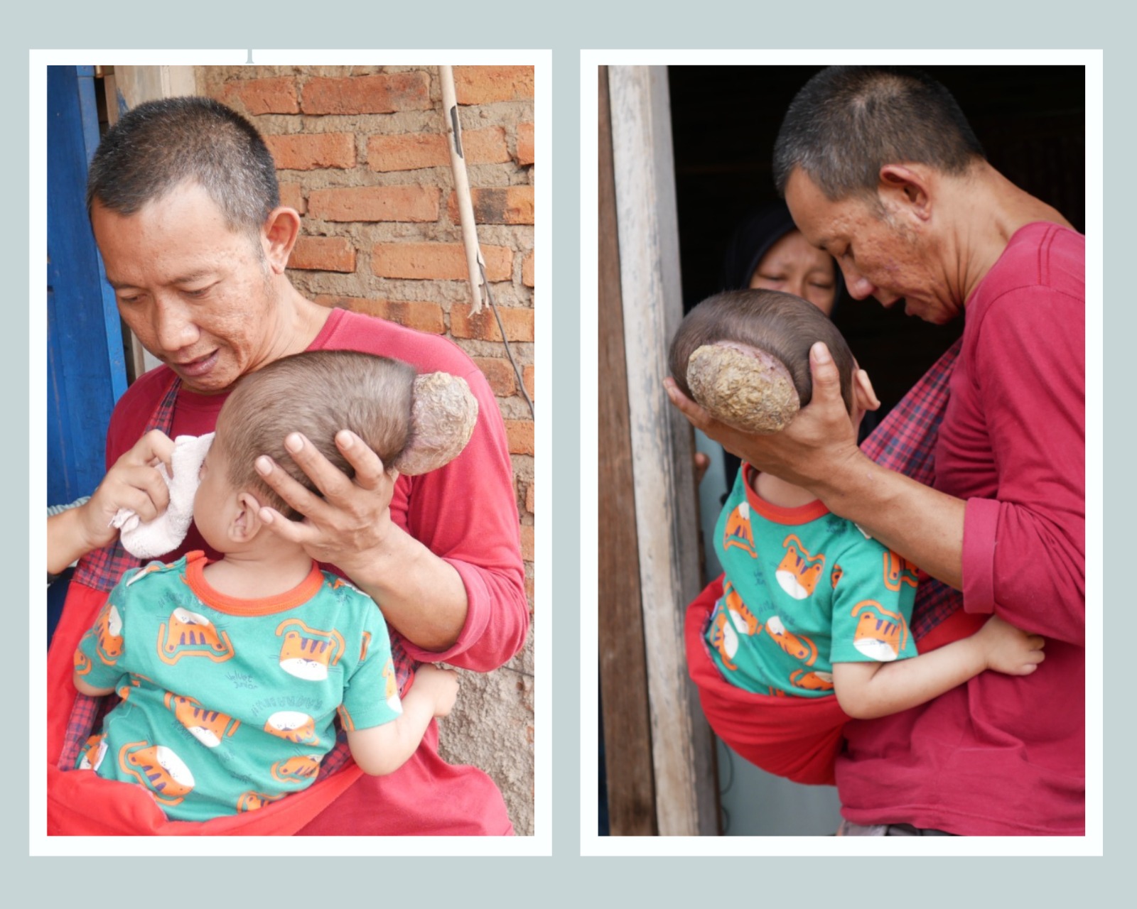 URGENITAS: Setelah pemerikasaan ternyata Dokter menyarankan Hydrosefalus De’ Abyaz harus segera dioperasi untuk pemasangan selang dari kepala ke kantung kemihnya, hal ini bertujuan agar cairan yang berada di kepalanya bisa terbuang saat ia buang air kecil sehingga bisa mengurangi ukuran kepalanya maka saat itu juga dilakukan operasi pemasangan selang tersebut, namun sejak 7 bulan lalu, selang tersebut rusak sehingga tidak bisa mengalirkan cairan yang terkumpul dikepalanya ke kantung kemih untuk dibuang akibatnya saat ini kepala Abyaz membesar dan kalau Selang tersebut tidak segera diperbaiki dengan mengganti selangnya, tentu hal ini akan sangat membahayakan terhadap syaraf-syaraf yang berada di kepalanya Abyaz. Sedangkan untuk benjolan dikepalanya belum pernah dilakukan Operasi sampai saat ini dikarenakan tidak bisa pakai BPJS Kesehatan dan tidak ada biaya, sehingga tidak bisa melakukan operasi lanjutan. Padahal operasi benjolan dikepalanya Abyaz harus segera dilakukan untuk menghindari benjolannya semakin membesar yang bisa mengakibatkan kerusakan otak serta syaraf-syaraf yang terdapat di kepalanya, dan jika hal itu terjadi kemungkinan akan berdampak pada kelumpuhan bahkan kematian. Padahal biaya yang harus dikeluarkan oleh Pak Didin tentulah tidak sedikit yakni kurang lebih 150 jutaan, sedangkan penghasilan Pak Didin jika digabung dengan Istrinya yang hanya bekerja sebagai buruh sekitar 3jutaan/bulannya dipastikan jauh dari kata cukup untuk biaya Oprasi anak bungsunya tersebut.
