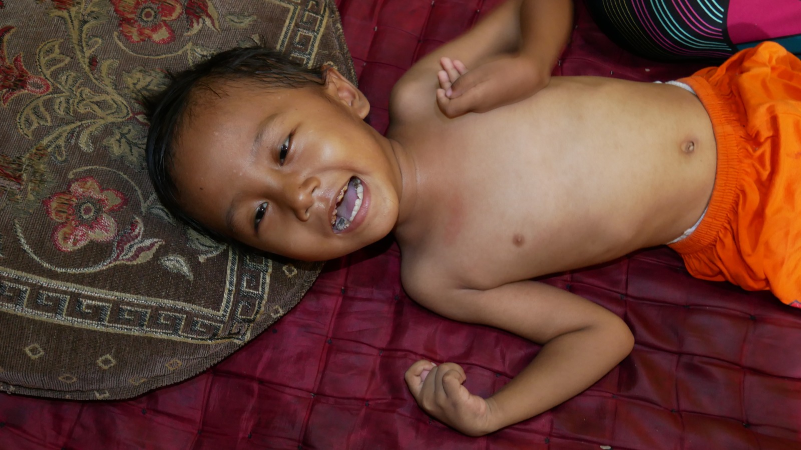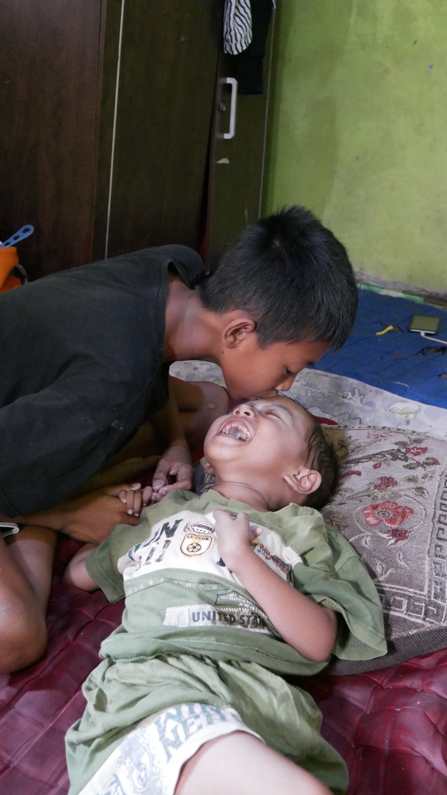“harusnya mah Rizky teh udah masuk SD sekrang tu, tapi kondisinya gak bisa ngapa-ngapain,,, buat duduk aja gak bisa bahkan bicara ma melihat pun belum bisa,, kasian Pak anak-anak lain mah pada main lari lari, ketawa ketawa tapi risky mah cuma bisa tiduran aja, gak tega liatnya juga…” lirih Mak Ustinah dengan nada sedihnya.
