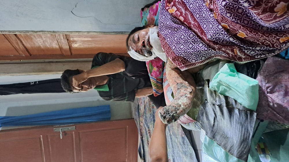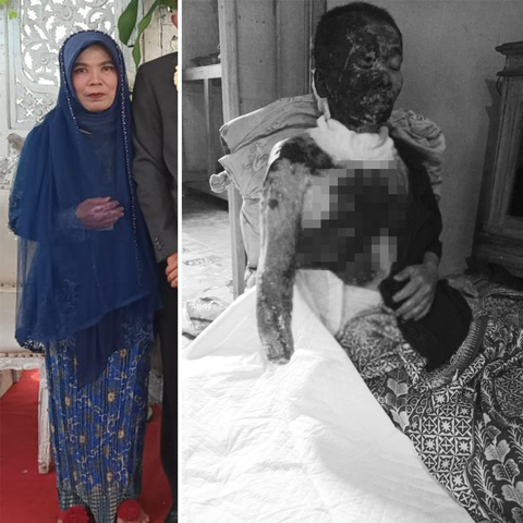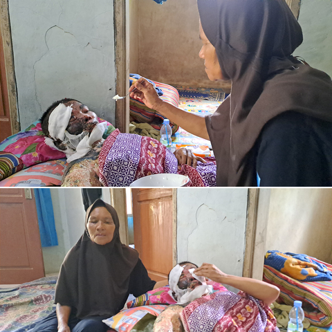 Beruntung Bu Yani memiliki Kakak Ipar yang sangat perhatian dan telaten merawat lukanya. Mulai dari membersihkan cairan yang selalu menetes dari luka bakarnya, menyuapi makan dan minum, hingga mengganti popok.