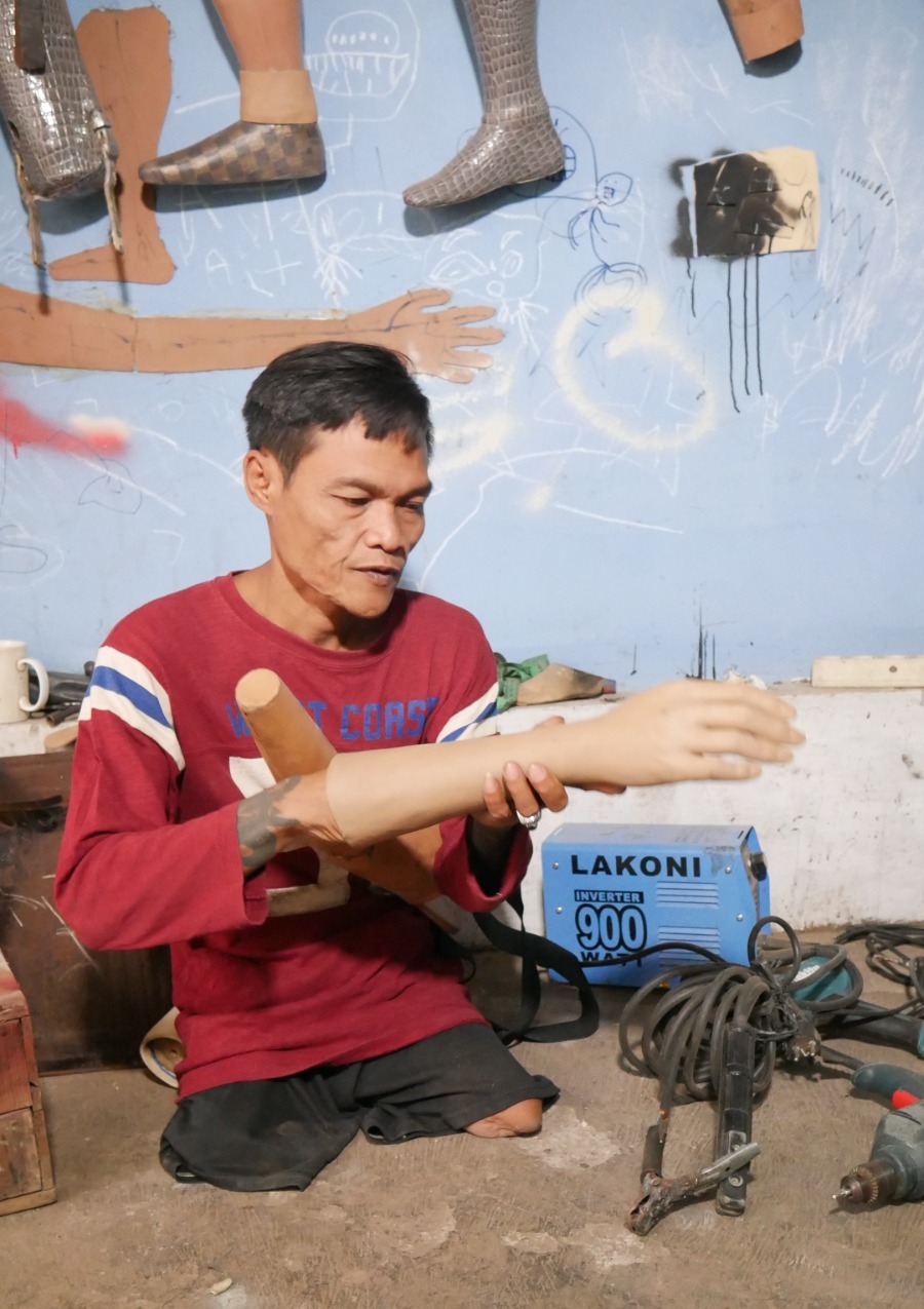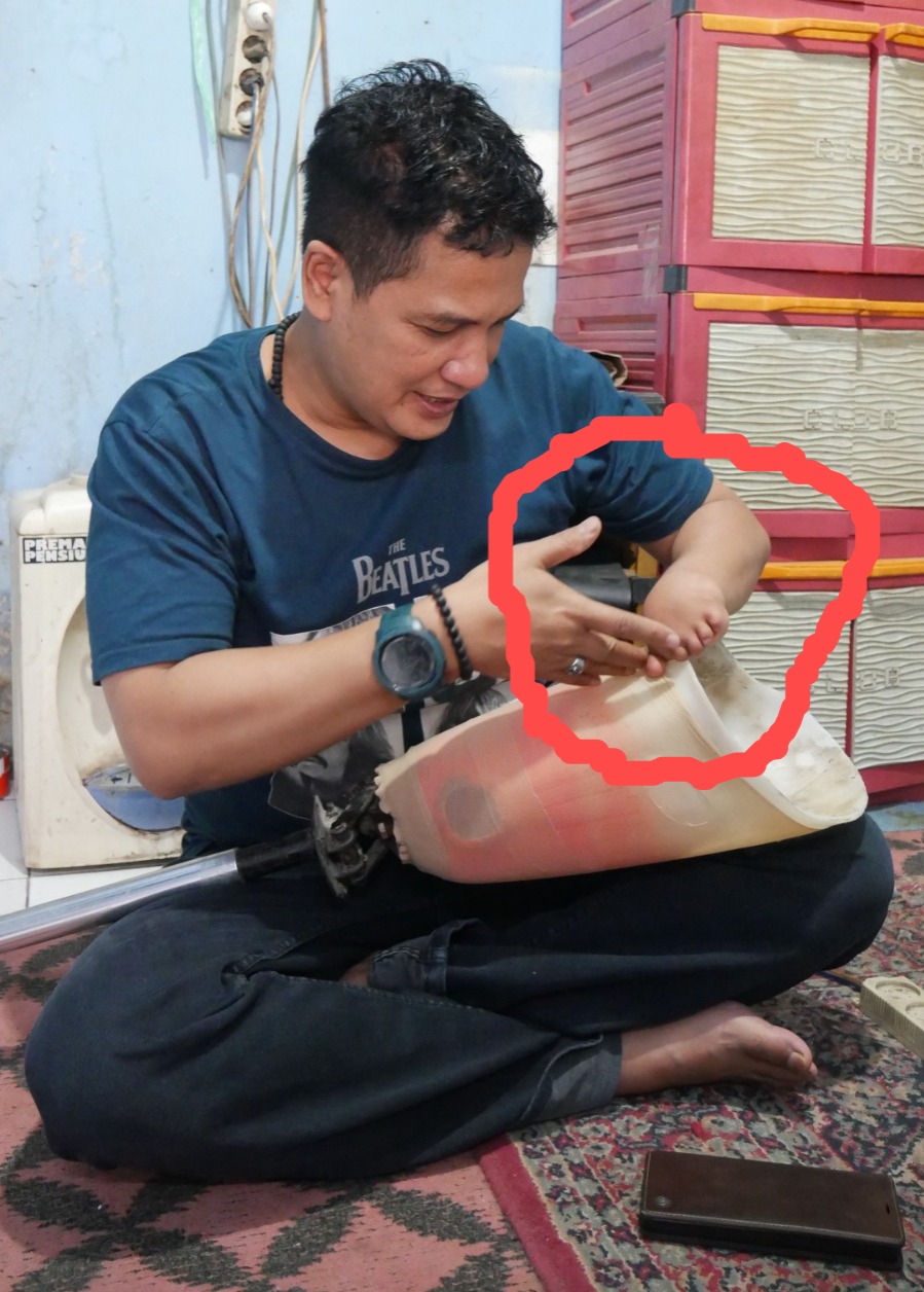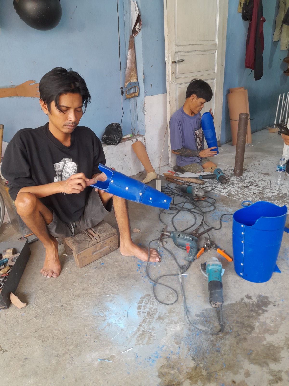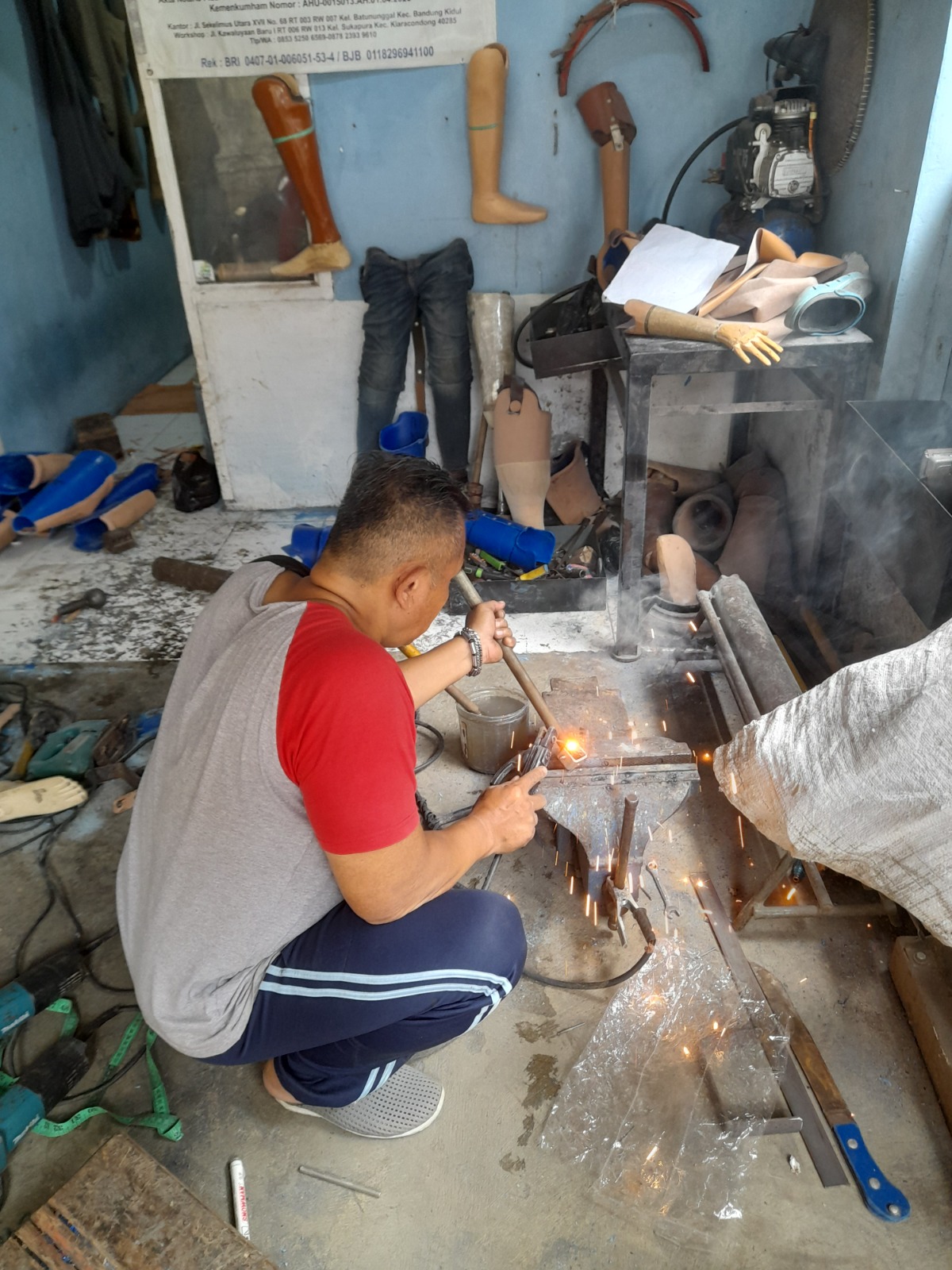 “Kita mah modal nekat kang waktu itu,, kita gak tau cara bikin kaki palsu, tangan palsu sama kursi roda karena kami kan dulu bukan dari pengrajin tapi kebanyakn pekerja biasa dan cacatnya pun bukan dari lahir tapi rata-rata karena kecelakaan, kita belajar bareng gitu, nyari nyari caranya di youtube ma Google..selama 1 tahun terus belajar dan akhirnya bisa, meski mungkin belum maksimal tapi setidaknya kami memiliki alat bantu yang murah untuk kegiatan sehari-hari, sekaligus kami juga bisa membantu para disabilitas lainya untuk mendapatkan kaki dan tangan palsu yang murah,,,” cerita Kang Anwar (47 tahun) atau sering disebut kang Ujju.