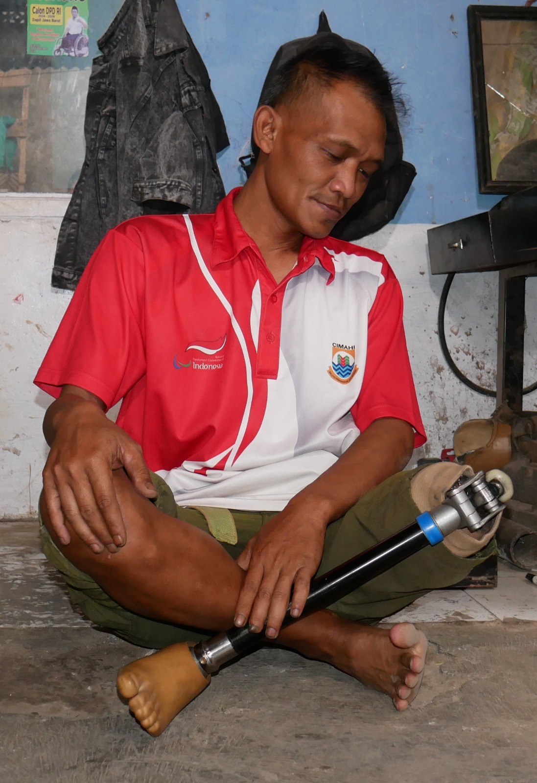 Begitupun Kang Indra (50 tahun) yang berasal dari Garut, Ia merupakan kepala produksi alat bantu kesehatan di Yayasan Kreatifitas Difable Mandiri sejak awal beridirinya Yayasan tersebut sampai dengan saat ini, kondisi Kang Indra sendiri Ia tidak memiliki 2 kaki akibat sebuah kecelakaan yang dialaminya saat Ia sedang bekerja sebagai tukang ojek digarut, ketika saat melintas rel kereta api, tanpa Ia sadari karena waktu itu malam hari, Ia tersambar Kereta Api yang melintas hingga membuat kedua Kakinya remuk tak berbentuk, akhirnya kedua kakinya diamputasi sehingga mengakibatkan kang Indra mengalami kecacatan seumurhidup, setelah kejadian tersebut Kang Indra mengalami Depresi selama hampir 2 tahun hingga Ia berusaha sebanyak 3 kali bunuh diri dengan cara pertama lompat dari bangunan lantai 3 kemudian selamat, yang ke dua dan ke tiga Ia minum obat nyamuk namun keburu ketahuan sama saudaranya.