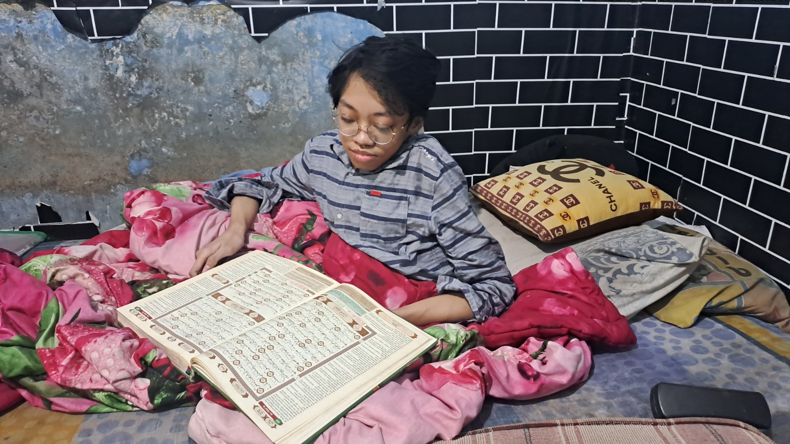 Siang itu, Muh fahri As-Sidiq (17 tahun) sedang murajaah hafalan nya dengan suara yang lirih, walau tidak bisa duduk dengan sempurna, tapi tidak memupuskan semangat Fahri untuk membaca dan mengulang hafalan Quran nya. Anak Dari Ibu Sri ini sudah 12 tahun menderita penyakit osteogenesis Inperfecta, yaitu Penyakit kelainan bawaan yang ditandai dengan tulang rapuh yang mudah pecah/patah yang disebabkan oleh gen yang rusak. Diketahui jenis penyakit ini sangat langka dan terdeteksi 1 dari tiap 20.000 sampai 50 ribu kelahiran.