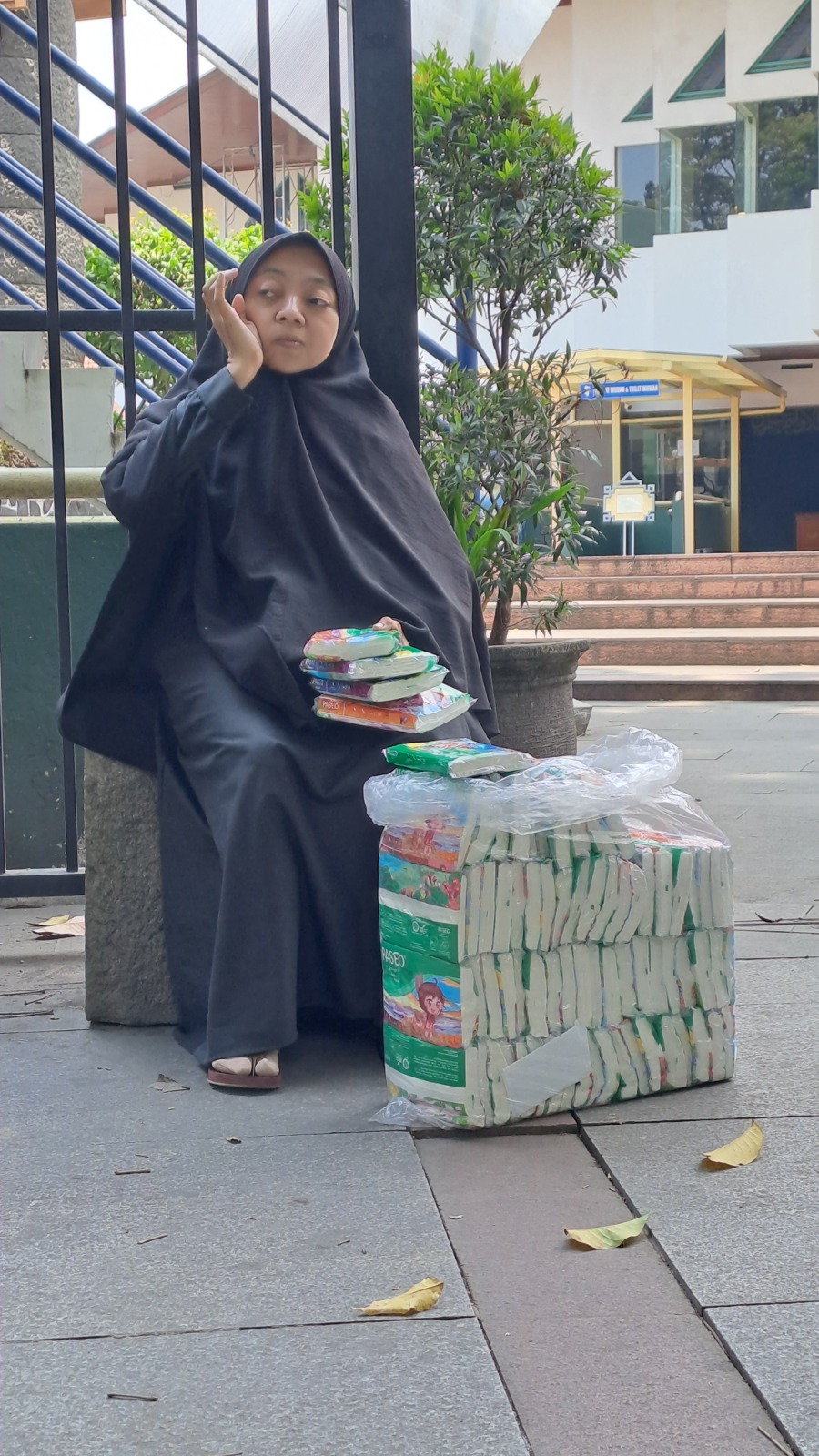 sehingga Iapun terpaksa harus berjualan tisu dideapn Masjid dan dipinggir jalan, meski dengan keuntungan sekitar 2.000 rupiah/tisu padahal Bu sri tak jarang harus kepanasan atau bahkan kehujanan.