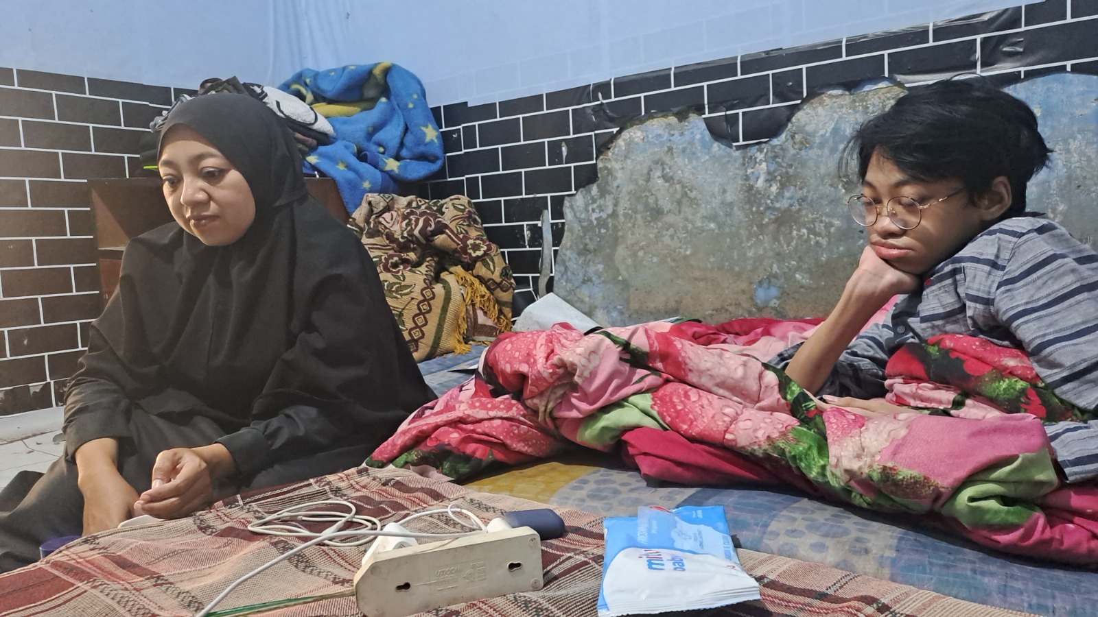 URGENITAS: Saat ini Fahri hanya bisa terbaring lemas Kalaupun duduk, bagian punggungnya harus menggunakan alat khusus untuk menopang, namun karena harganya yang cukup mahal sekitar 6 jutaan, Bu Sri tidak mampu membelinya sehingga untuk menopang ketika Anaknya tersebut duduk, Bu Sri harus menggunakan kedua tangannya, atau menopang bagian kepalanya dengan menggunakan salah satu tangannya agar kepalanya bisa tegak, tentunya hal ini tidak bisa Ia lakukan lama-lama, dikarenakan selain kondisi Bu Sri yang hampir sama dengan Fahri tentunya Ia juga merasa kesemutan jika harus menopang lama-lama.