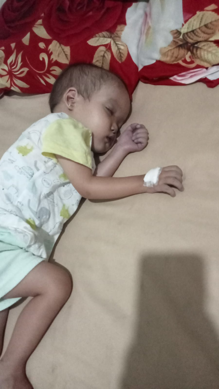 SahabatKu… saat ini Kirana dan keluarganya sedang membutuhkan biaya pengobatan yang tidak sedikit, sedangkan dari penghasilan Pak Heri sebagai buruh serabutan yang hanya mendapatkan penghasilan sekitar 50 ribu sampai dengan 150 ribu persekali suruh dan itupun tergantung apa yang disuruh, dengan penghasilan segitu, jangankan untuk membawa Kirana berobat hingga pulih, untuk memenuhi kebutuhan sehari-hari merekapun seperti untuk makan, popok, bayar listrik, susu, vitamin dan lainnya masih bingung bahkan sampai harus berhutang kewarung saudaranya.