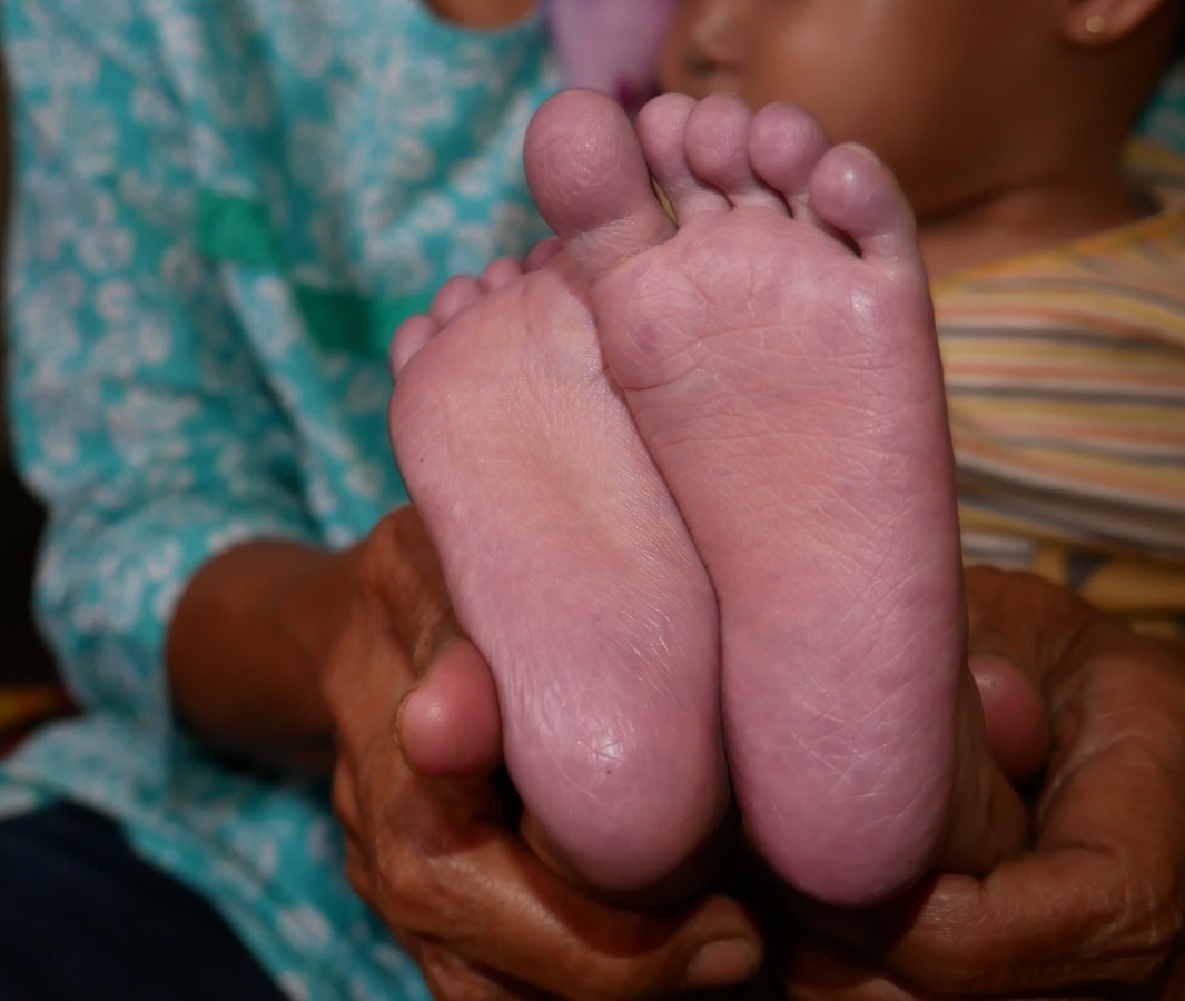 Namun saat kami memperhatikan lebih dalam, kami merasa ada suatu kejanggalan yang menimpa Kirana, seperti dadanya yang membusung kedepan, kemudian telapak kaki hingga ujung-ujung jarinya tampak membiru hampir kehitaman, dari mulai kedua telapak tangan hingga ujung-ujung jarinya pun tampak sama seperti kondisi kakinya, bahkan hingga bibir dan lidahnya pun tak luput mengalami hal yang sama.