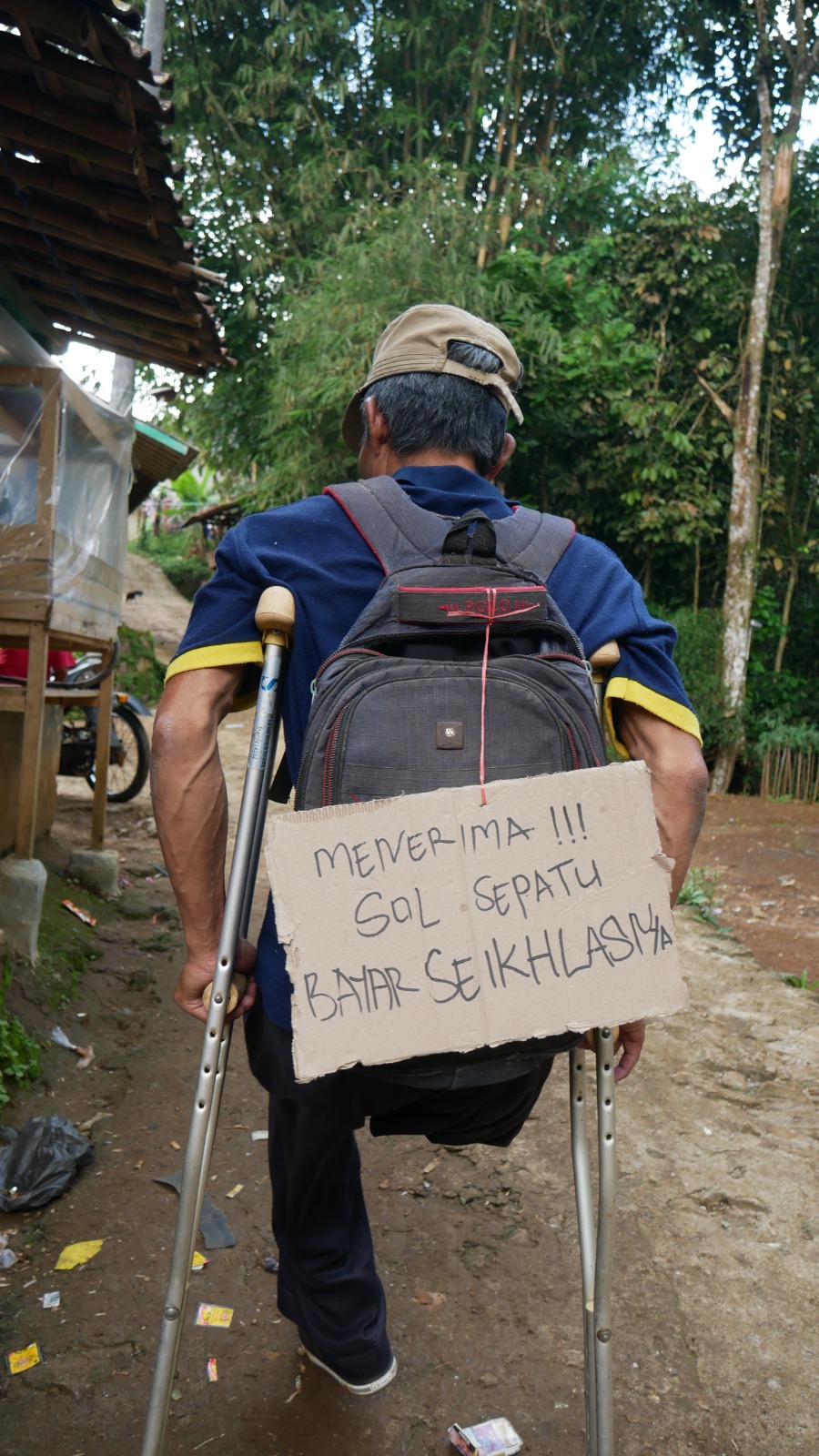“Ga berapa lama setelah kaki diamputasi, istri pergi ninggalin saya. Hilang kaki dan ditinggal istri”, lirih Pak Hendar (51 tahun) meratapi nasibnya.