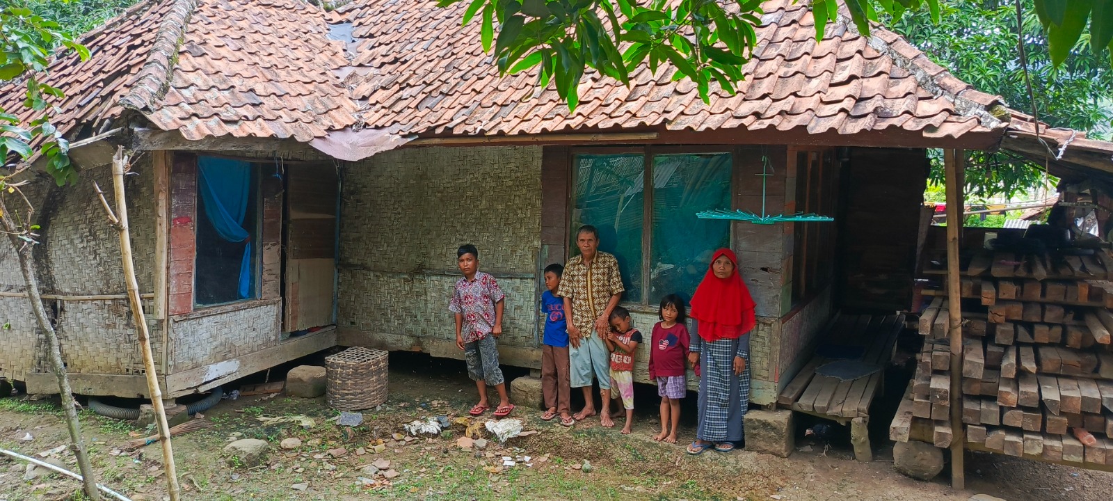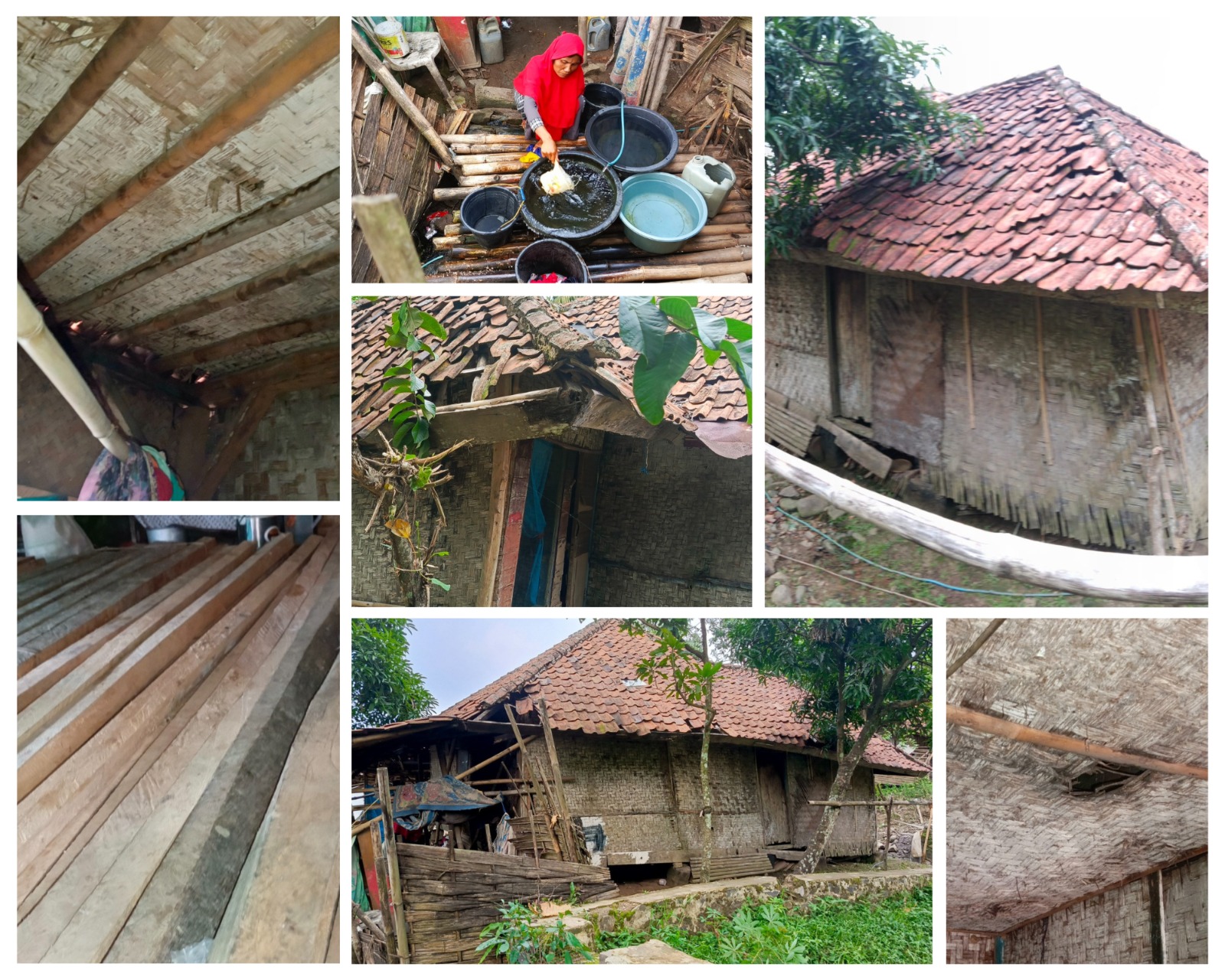 UREGENITAS: Saat ini Pak Omon tinggal beserta keluarganya disebuah rumah panggung yang merupakan warisan dari keluarganya, kondisi rumah tersebut begitu sangat memprihatinkan, dengan dinding terbuat dari anyaman bambu yang sudah bolong-bolong dibeberapa tampat, lantainya yang terbuat dari kayu bambu sudah rapuh serta bolong sehingga kalau diinjak harus hati-hati sekali makanya hampir seluruh lantainya ditutupi bongkahan kayu agar kuat untuk diinjak, sedangkan untuk toiletnya berada diluar belakang rumahnya itupun dengan bangunan alakadarnya yang hanya ditutup sisi-sisi pinggirnya tanpa memiliki atap, tiang-tiang kayu rumahnya pun sudah rapuh serta sudah miring, begitupun dengan atapnya jika hujan dipastikan bocor dimana-mana, ditambah untuk bagian dapurnya sudah tidak dipergunakan lagi karena sudah rapuh sekali apalagi jika sedang hujan yang dibarengi dengan angin besar dikhawatrikan Pak Omon rumahnya ambruk, tentunya jika hal itu terjadi akan membahayakan nyawa Pak Omon beserta keluarganya.