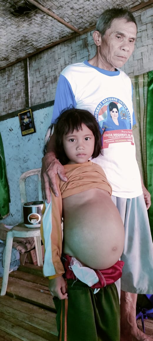 Namanya Ineu, saat ini Ia berusia 8 tahun dan duduk dibangku kelas 2 Sekolah Dasar, namun kondisi tubuhnya amat sangat memprihatinkan dengan perut yang begitu besar, dengan seiring berjalanya waktu perut Ineu pun kian terus bertambah besar, tentunya jika ini dibiarkan terus menerus tanpa melakukan pengobatan kemungkinan Organ-organ dalam yang ada diperutnya akan rusak, sehingga hal ini akan mengancam nyawa Ineu sendiri.