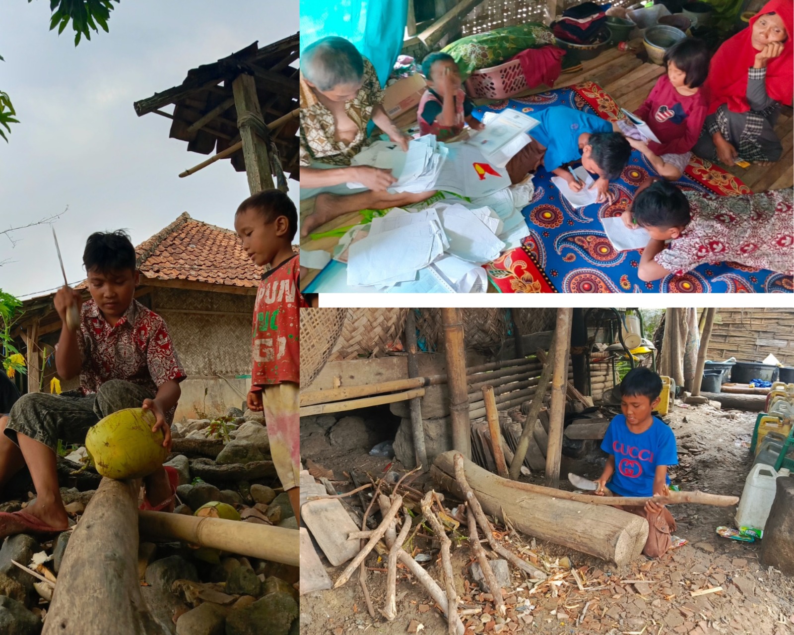 Anak ke 3 yang bernama Sigit sudah jarang masuk sekolah karena tidak memiliki biaya dan bekal buat sekolah, sedangkan jarak dari rumah ke Sekolah cukup jauh sekitar 4km, sehingga Ia pun suka ikut Bapaknya bekerja di sawah (ngageubug padi) atau menjadi tukang pembelah kelapa dengan sehari di kasih upah 20-35 ribu tergantung orang yang ngasih kerjaan,