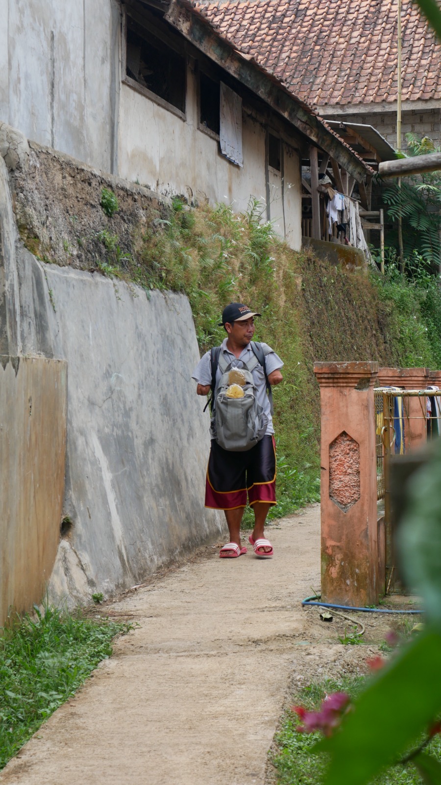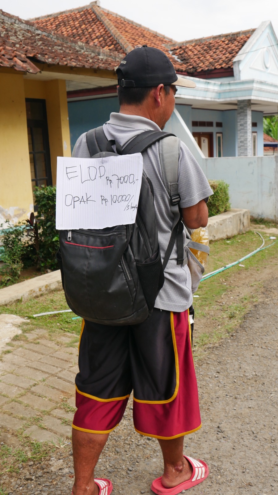 Setiap pagi, dari jam 6 sampai larut sore, Pak Wahyu (48 tahun) keliling desa dengan berjalan kaki sejauh belasan kilometer demi menjajakan barang dagangannya. Namun sedih, Opak dan Olednya sering sepi dari pembeli, salah satunya karena orang-orang merasa aneh melihat kondisi tubuhnya yang tidak memiliki tangan.