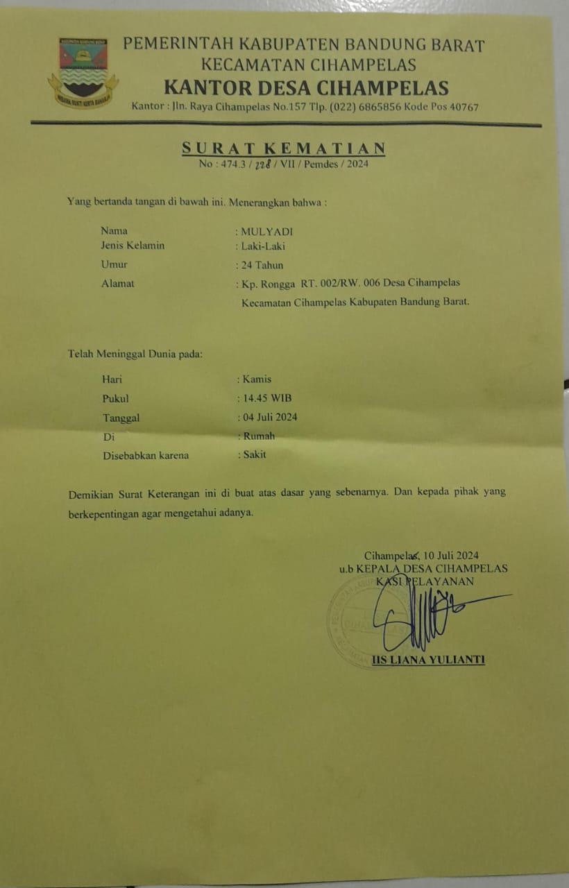 “Sudah cukup Pak Saya kehilangan Istri saya dan Anak Saya karena penyakit yang sama, Saya mungkin kemarin lalai dalam memperjuangkan kesembuhan Istri Saya dan Yadi karena ketiadaan biaya, tapi kalau sekarang Saya ingin memperjuangkan kesembuhan untuk Yuni anak kedua Saya yang memiliki gejala yang sama penyakitnya..”, ucap Pak Yana.