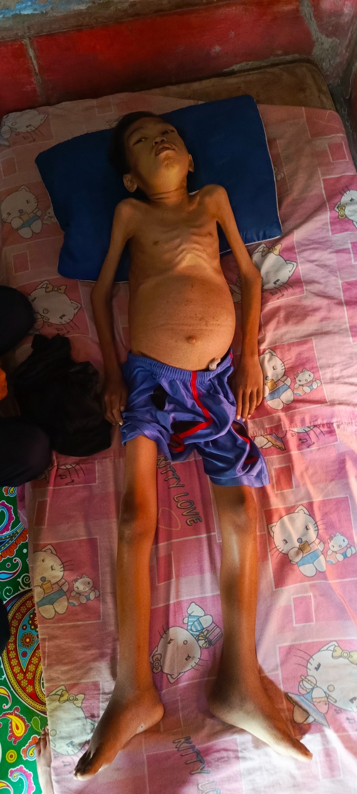 Bahkan saat ini kondisi kang Mulyadi atau yang sering dipanggil Yadi semakin parah, bayangkan bagaimana untuk bernafas saja ia terengah-engah tidak ada oksigen sebagai alat bantu pernafasan karena harganya yang mahal, lalu untuk bicara saja Ia begitu kesulitan, sedangkan paru-parunya susah dalam mendapatkan udara segar! Mirisnya karena sudah lama tak ditangani medis, semakin hari kondisi badannya menyusut karena Thalasemia mayor atau thalassemia berat (kelainan sel darah merah) akibatnya tubuh Mulyadi kecil seperti usia baru 14 tahun padahal saat ini usianya akan menginjak 25 tahun dengan kulit disekujur tubuhnya berwarna kuning, kondisi kedua mata yang sayup, Pipi jatuh kebawah, kedua tangan kurus, perut membuncit sebesar baskom, kedua kaki besar membengkak, sehingga ketika duduk terus ingin berdiri, Ia harus dibantu terlebih dahulu baru bisa berdiri dan jalan pun pelan-pelan sekali dengan tertatih-tatih karena Ia mudah kecapean hingga kehabisan nafas (nafasnya berat), makanya kang Yadi lebih banyak tiduran dalam keseharian nya.
