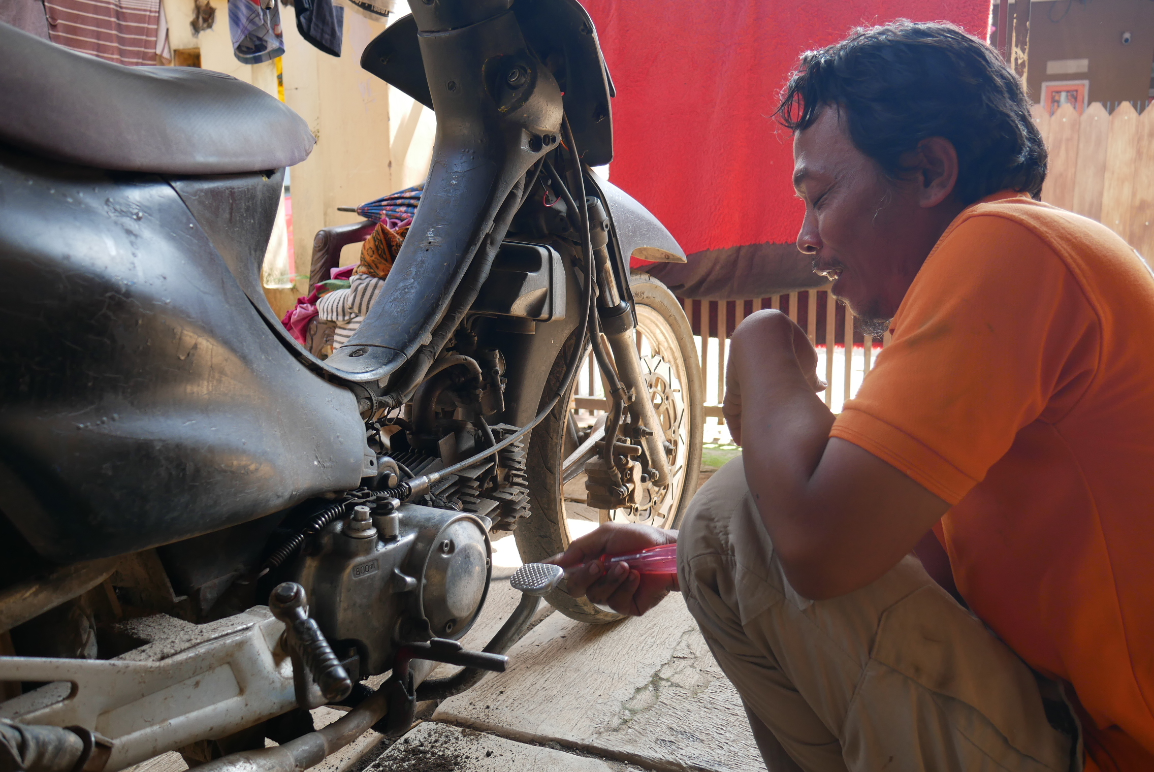 Pak Azis sampai harus rela menjual motor yang biasa digunakan untuk bekerja. Beruntung, saat ini ada saudaranya yang mau meminjamkan motor untuk Pak Azis bekerja dan antar jemput anak-anaknya yang lain, meski sering mogok dan kurang layak pakai.