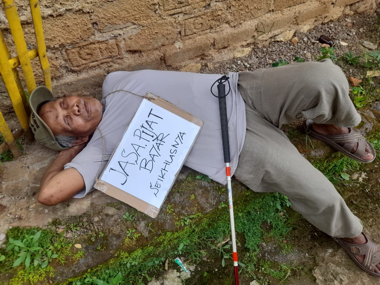 Sehari-hari Abah Ade bekerja sebagai tukang pijat keliling demi sesuap nasi untuk mengisi perutnya yang kosong. Sudah puluhan tahun Abah Ade jadi tukang pijat, tapi kini pelanggannya semakin berkurang sejak taun 2020.