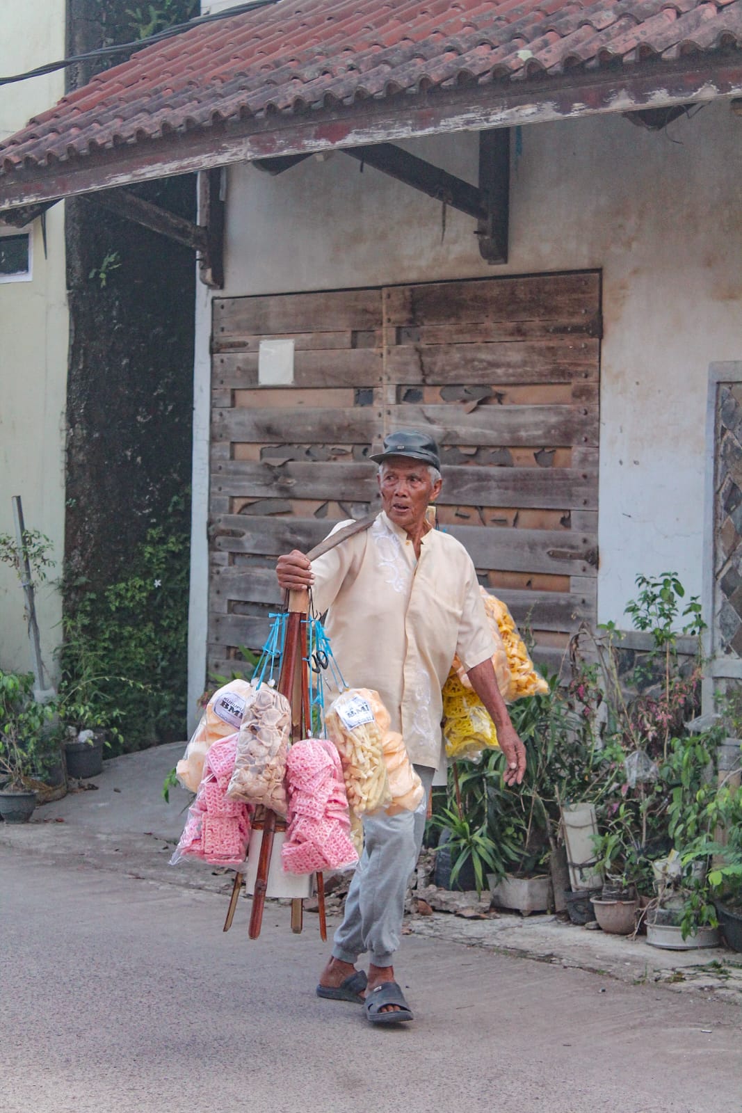 Setiap hari, Abah berangkat pagi dengan membawa kerupuk yang digantung di tanggungannya. Meski tubuhnya ringkih, semangatnya belum padam. Dengan penghasilan hanya sekitar 15–20 ribu rupiah per hari, ia berusaha bertahan hidup. Uang itu dipakai untuk makan seadanya, kadang hanya nasi dan sambal garam.