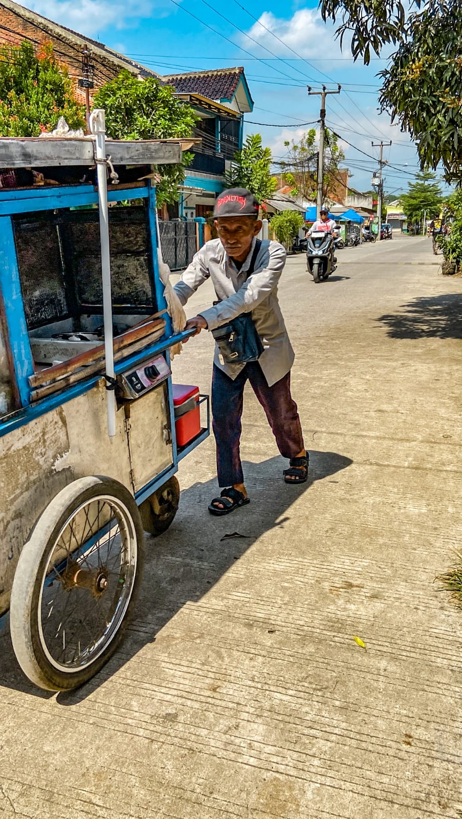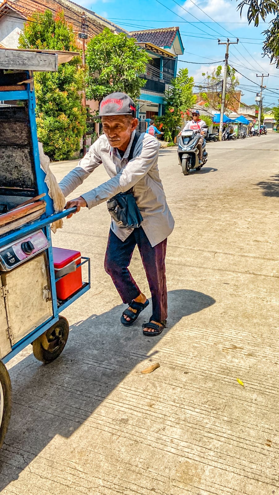 "Kalau bisa beli gerobak baru," katanya suatu kali kepada seorang pelanggan, "yang rodanya lancar, nggak bikin sakit pinggang, alhamdulillah... biar dagang lebih enteng, jalan pun nggak sakit-sakit lagi."