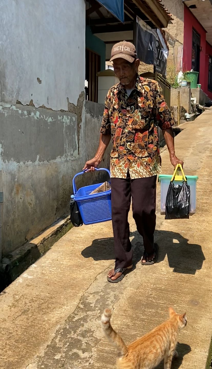Matahari siang membakar kulit keriput Ajo Warsa. Usia 79 tahun tak mampu menghalangi langkahnya berjualan gorengan. Di tangannya yang gemetar, ia menenteng keranjang berisi pisang goreng dan bakwan.