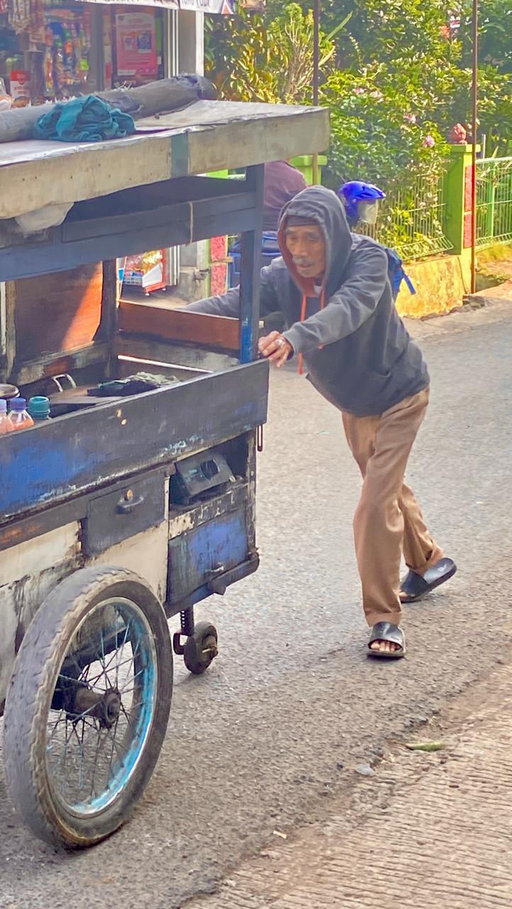 Namun gerobaknya yang terbuat dari kayu sudah mulai rapuh, Abah punya keinginan untuk memperbaiki gerobaknya menjadi lebih baik,