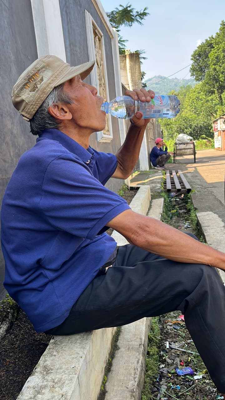 Siang hari menjadi waktu terberat. Panas menyengat, keringat mengalir, dan napasnya kerap terasa berat. Tak jarang Abah Udin duduk sebentar di samping gerobak, memijat kakinya yang sakit sambil menatap buah dagangannya, berharap ada pembeli yang datang. Senyum ramah selalu ia pasang, meski di balik senyum itu ada tubuh yang lelah dan hati yang sering diuji. Abah Udin tidak pandai mengeluh. Baginya, selama masih bisa berjalan dan mendorong gerobak, ia akan terus berusaha.