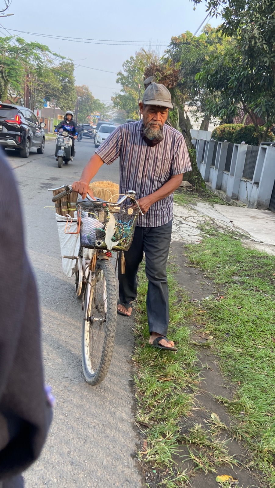 Setiap pagi, seorang kakek bernama Abah Umir, yang kini berusia 64 tahun, mengayuh sepeda tuanya menyusuri jalanan . Di bagian belakang sepedanya, tersusun sapu lidi dan sapu ijuk yang ia ikat dengan tali rafia seadanya, sapu itu ia beli lalu ia menjual nya kembali,Meski sepedanya sudah berkarat, rantainya sering berbunyi keras, Abah Umir tetap setia menggunakannya untuk berjualan sapu keliling. Dengan suara lirih, ia menawarkan dagangannya, “Sapu… sapu, Bu…”