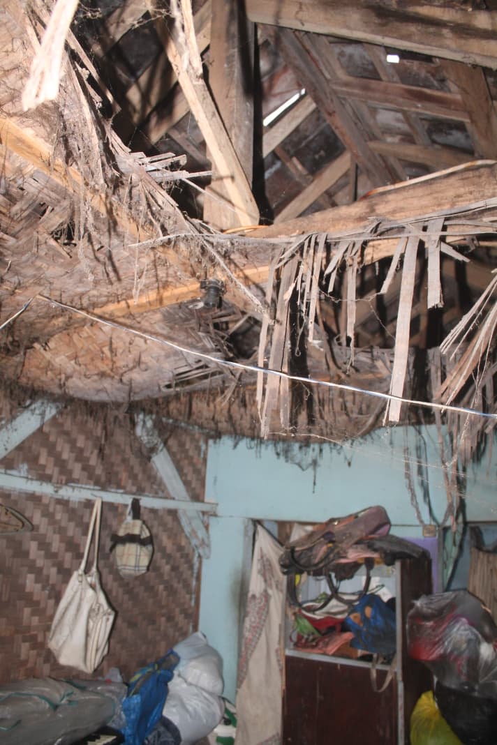 dan pada saat team Lentera Pijar Kebaikan Mengunjungi kediaman abah dan nenek, ternyata tempat tinggal mereka Jauh dari kata layak, dengan bangunan yang hampir rubuh, atap atap sudah sangat banyak yang bocor, dan juga mereka tidak mempunyai kamar mandi sendiri.