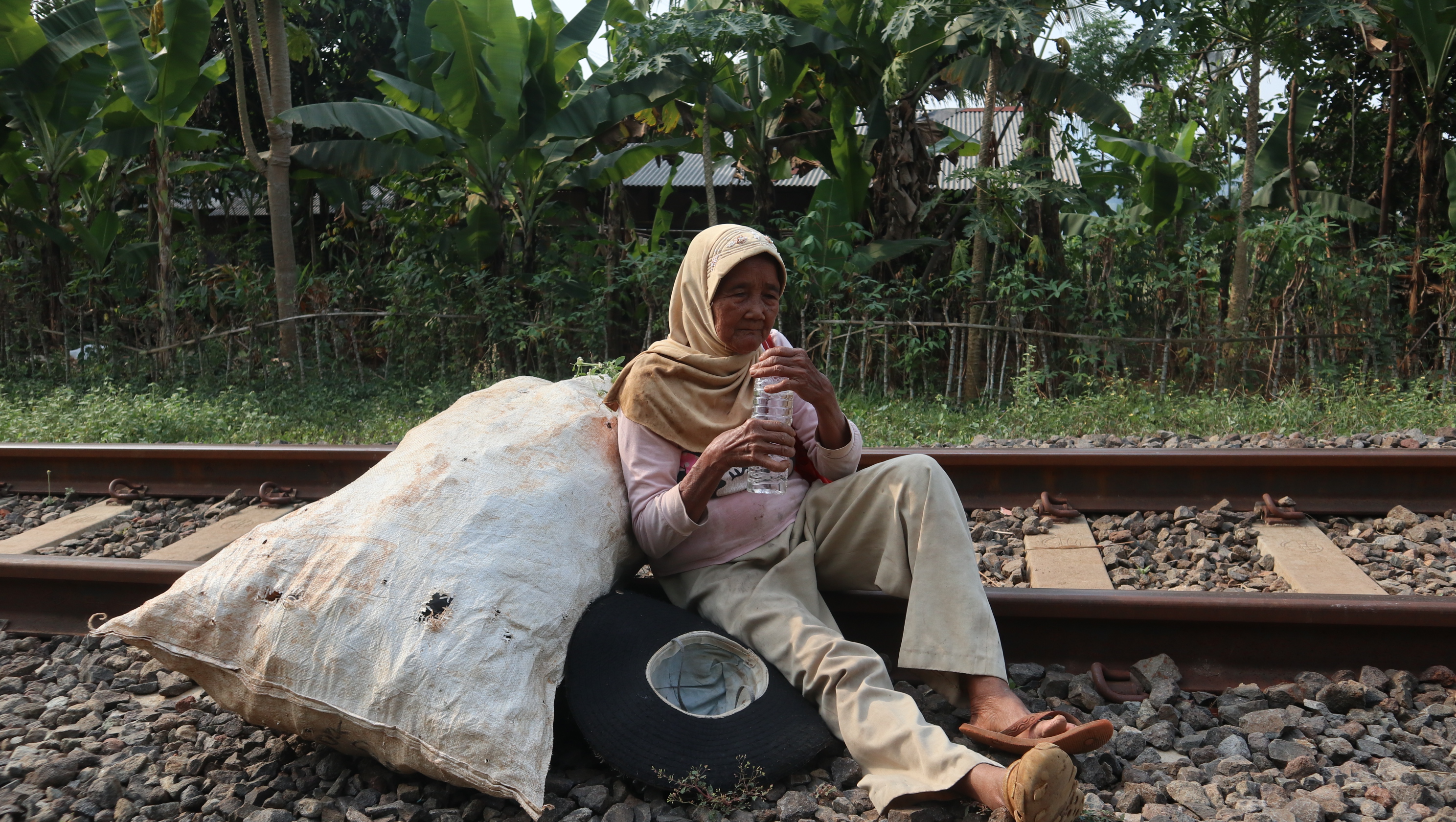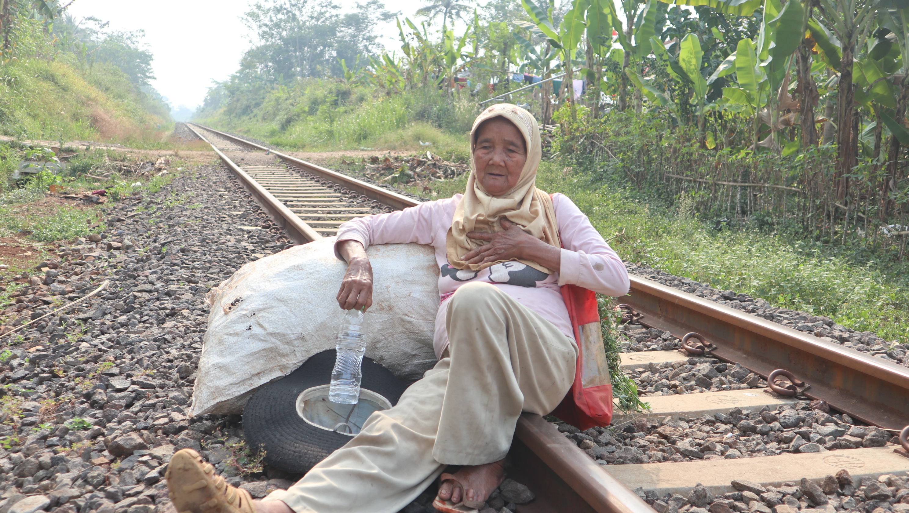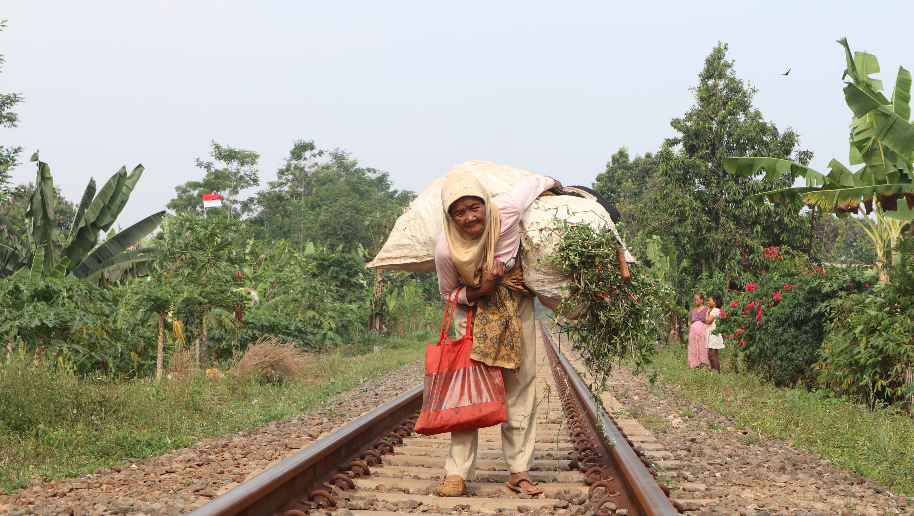 Sinar Mentari belum menampakan Cahaya nya, tapi Mak Asih (80) tahun sudah bersiap menapaki papan kayu di tengah rel kereta api. Dua kilometer bukan jarak yang dekat untuk ditempuh. Tapi Mak terus menebas rumput untuk pakan ternak kambing tetangga nya.