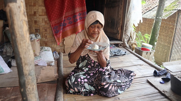 Lansia itu biasa dipanggil dengan sebutan mak Eutik, saat ini usianya telah mencapai 78 tahun. Sebatangkara Emak menempati sebuah Gubuk berukuran 2x3 meter yang berdiri sebuah lahan milik orang lain. sang suami telah berpulang satu tahun yang lalu.