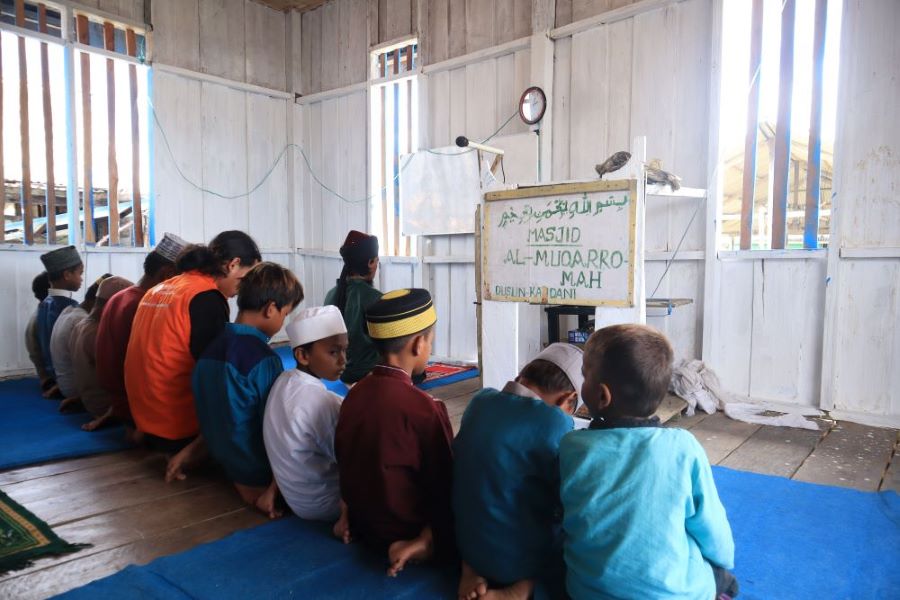 “Banyak anak-anak ngaji tiap hari di sini, setelah shalat Dzuhur dan Magrib,” tutur Ustadz Mustafa, pemuka agama di sini.