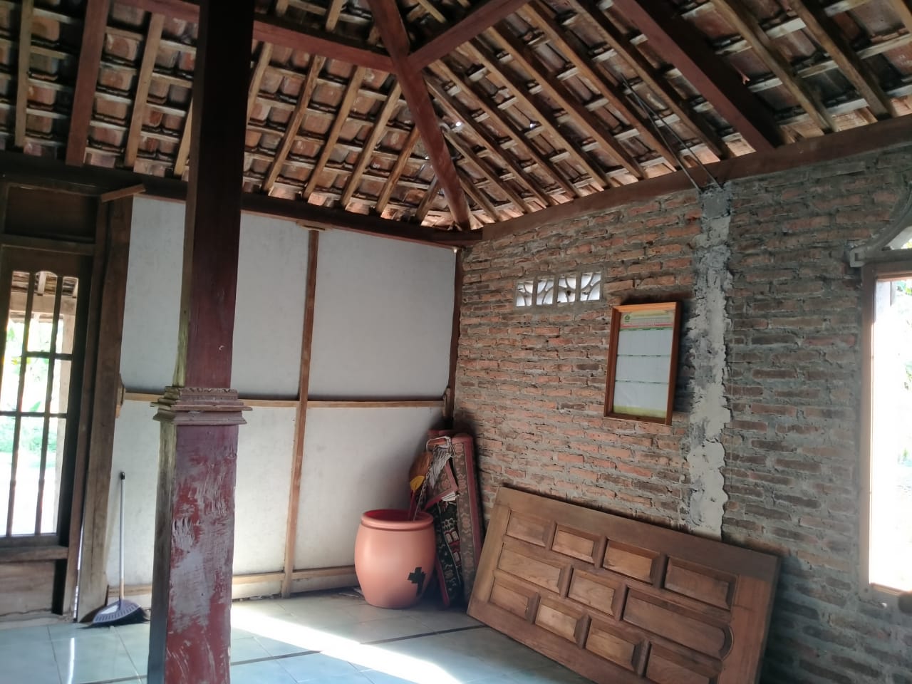 Sobat, Masjid Al-Barokah nampak seperti bangunan joglo tua yang sudah memprihatinkan kondisinya. Coba kita bayangkan jika hujan turun disertai angin, maka air akan bebas masuk dari atas maupun jendela samping. Bahkan jamaah akan khawatir kalau-kalau masjid akan ambruk karena tiang-tiang penyangganya sudah keropos.