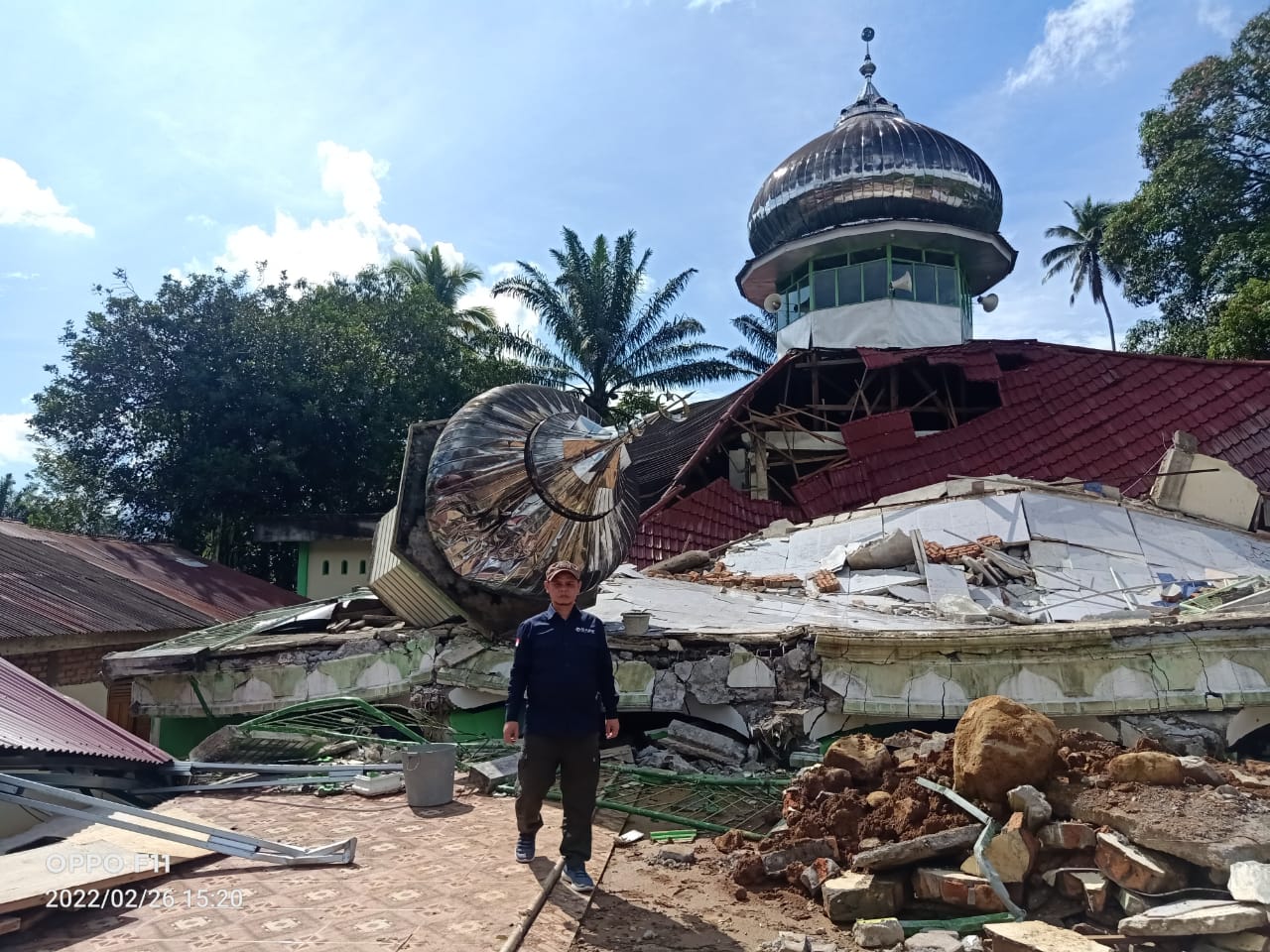 Masjid Raya Kajai di Pasaman Barat Ambruk akibat gempa