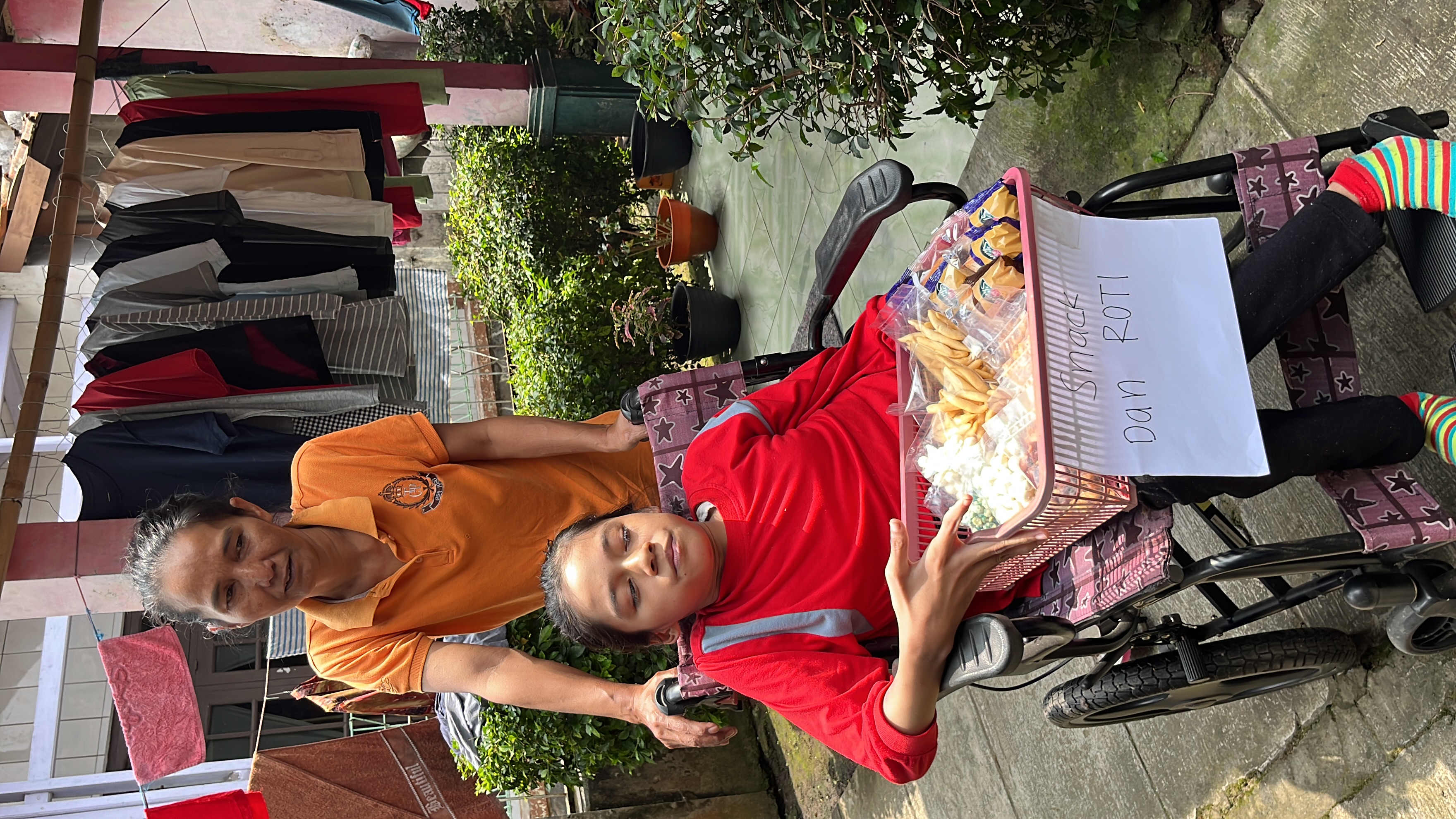 “Siang malam saya kerja sambil bawa Novi karena ga ada yang ngurus dan jaga. Jadi saya bawa pakai kursi roda,” ungkap Bu Karmilah.