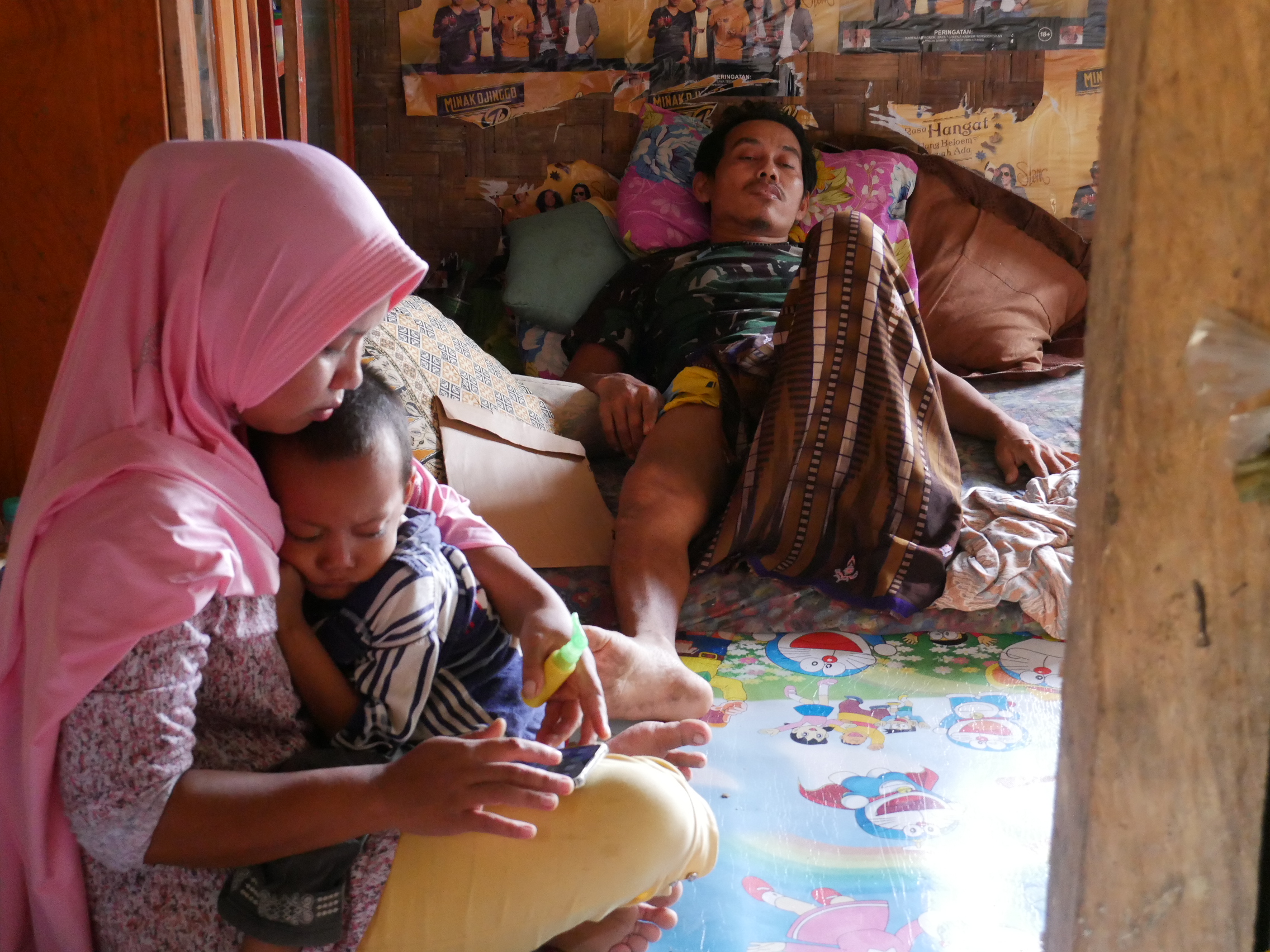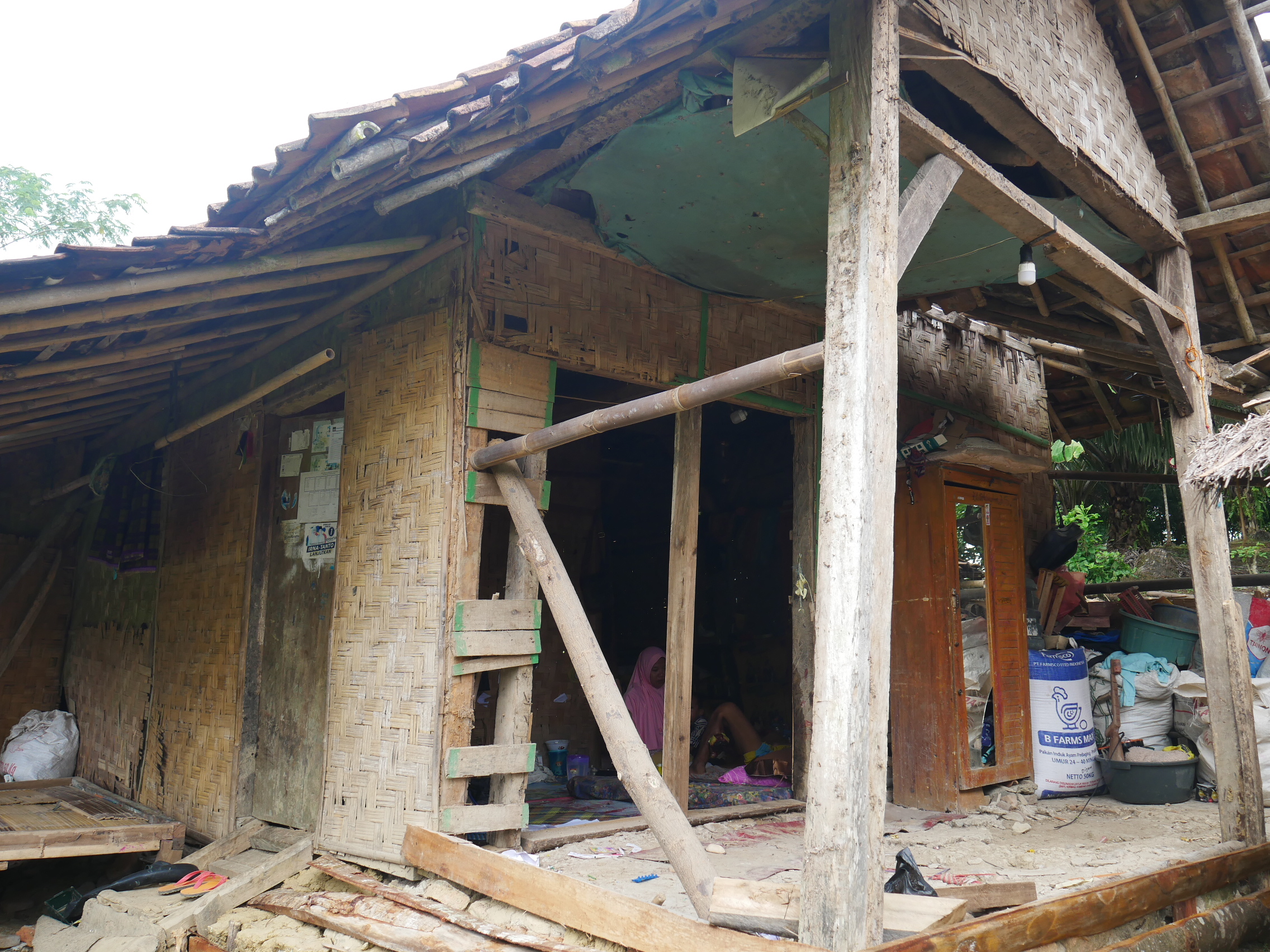 Pak Nurjaya dan keluarga tinggal di sebuah gubug reot terbuka yang sangat tidak layak huni di daerah Kp. Pematang Bedul Cikeusik, pelosok Banten.
