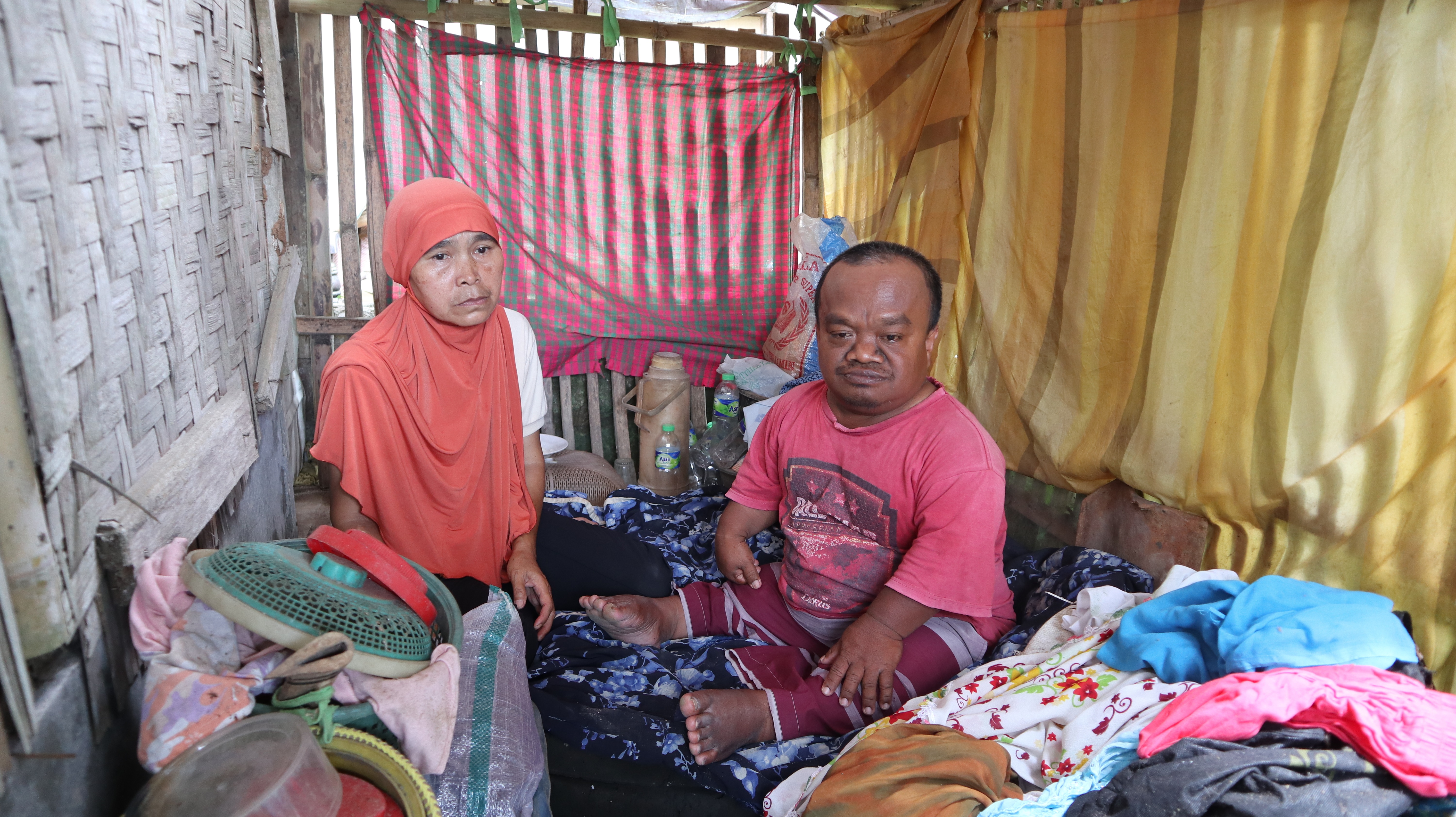 Tanpa menghiraukan kondisi fisiknya, Pak Muh semangat mencari nafkah demi sesuap nasi. Bersama istrinya, Bu Ayuh (55), mereka tinggal di gubuk tidak layak huni dan berbahaya. Sebagian dinding dan atapnya hanya ditutupi terpal dan kain bekas. Jika hujan lebat, mereka terpaksa mengungsi di rumah tetangga.