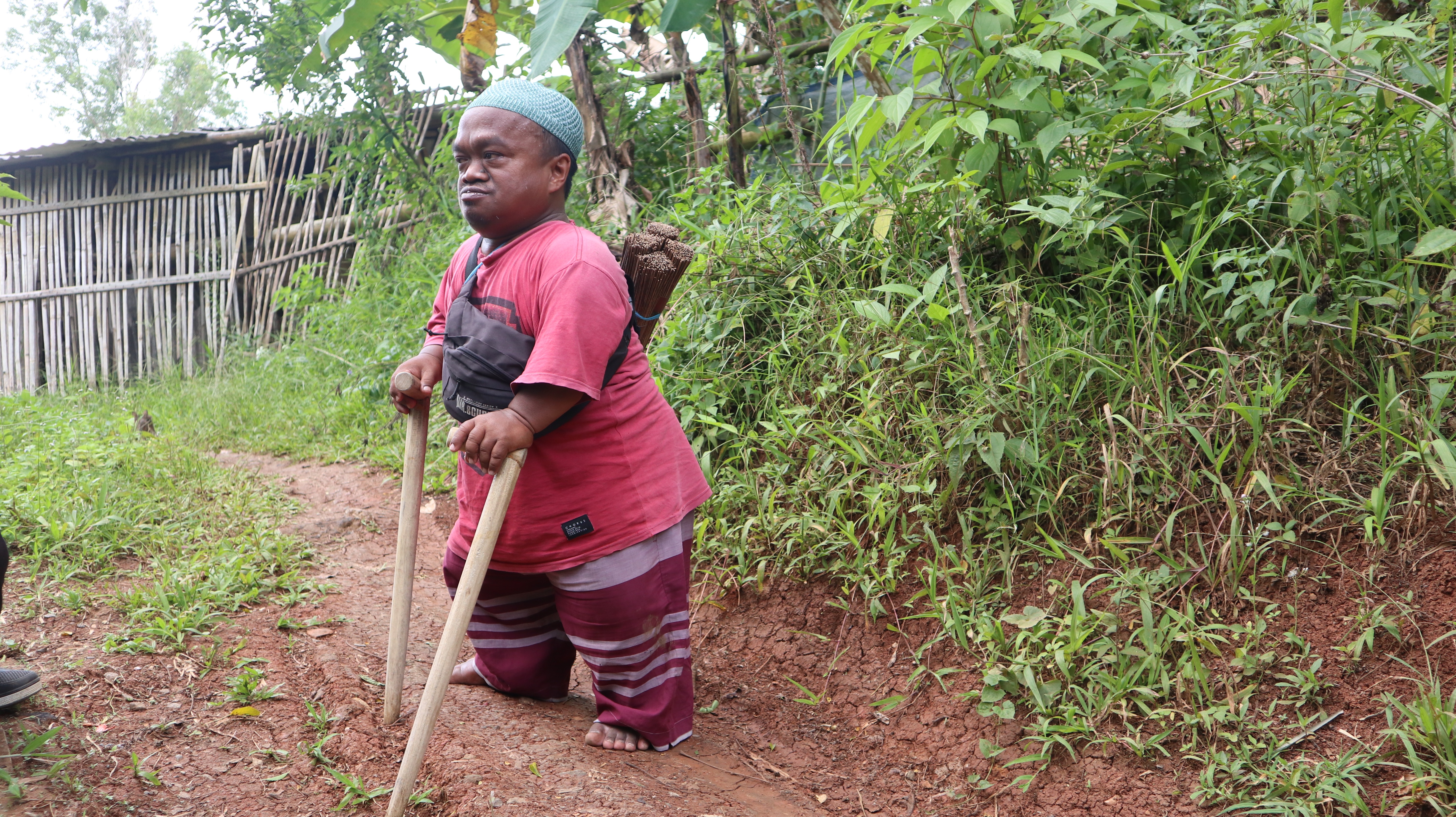 Setiap hari Pak Muhtadin (45) keliling jualan sapu lidi dalam kondisi kakinya bengkok dan lemah. Terlahir dengan kelainan genetik Achondroplasia, Pak Muh mengalami banyak keterbatasan.