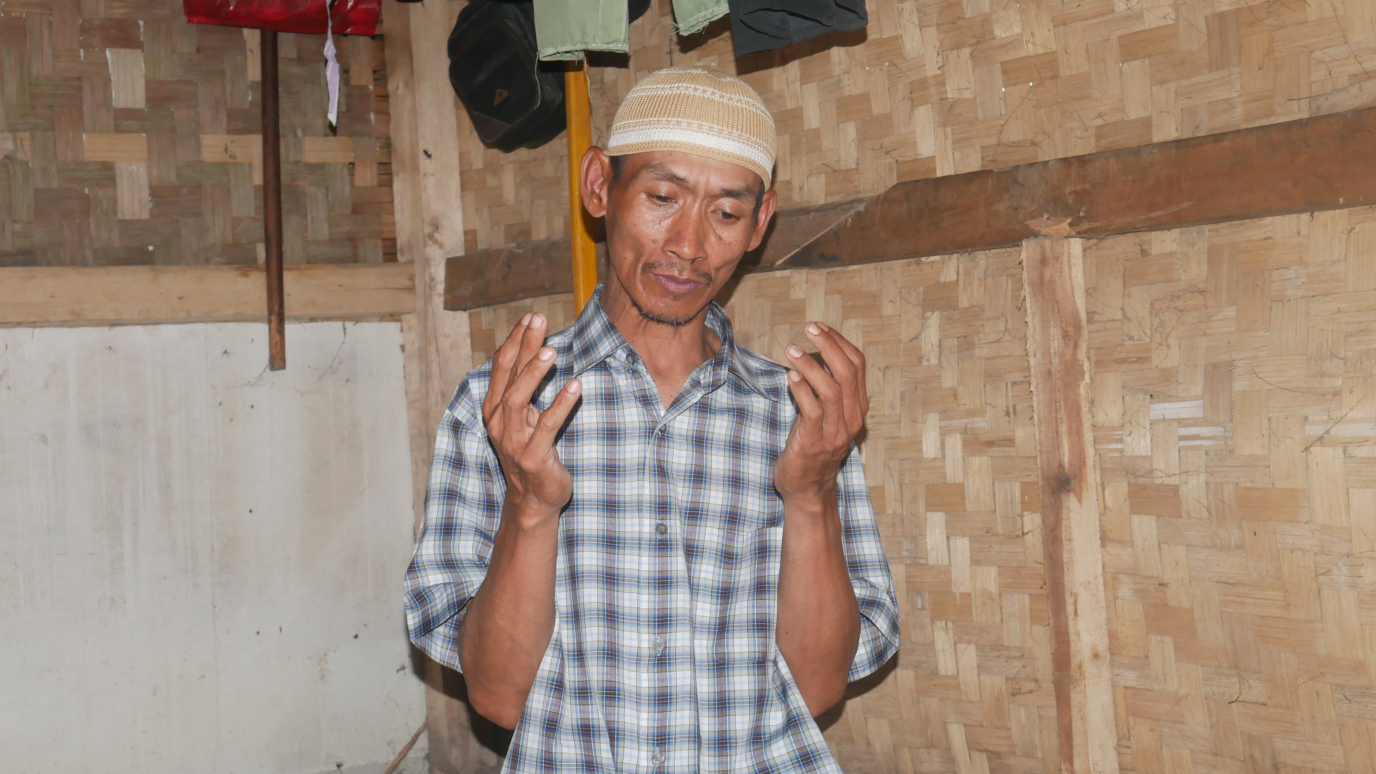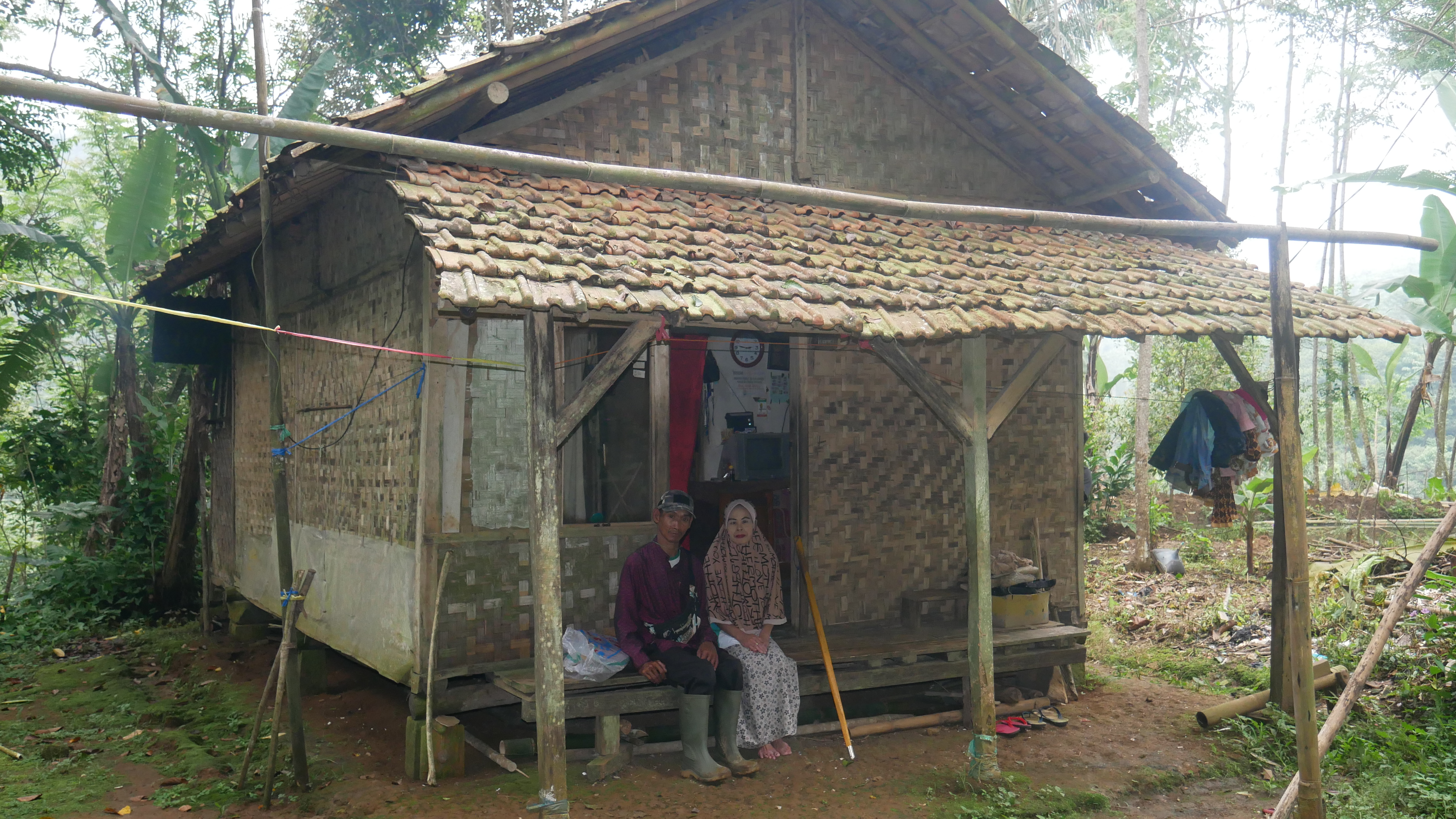 “Kadang kasian liat istri tinggal di bilik gini. Kayunya udah keropos, dindingnya banyak yang jebol, atapnya bocor, lantai juga udah banyak yang bolong. Saya khawatir rumahnya ambruk kalo hujan besar. Belum lagi bilik saya ada di bawah tebing. Mudah-mudahan ga longsor,” harap Pak Sule.