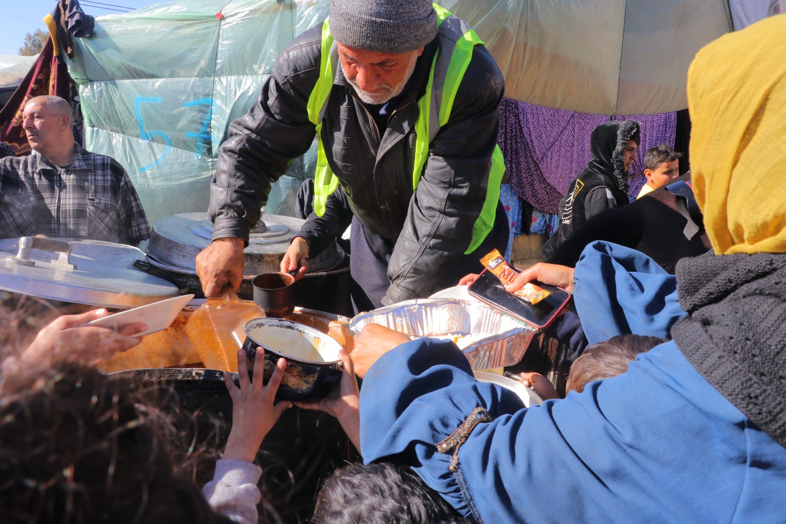 "Di antara reruntuhan dan puing-puing, anak-anak duduk menahan lapar... menunggu uluran kasih dari dunia luar."